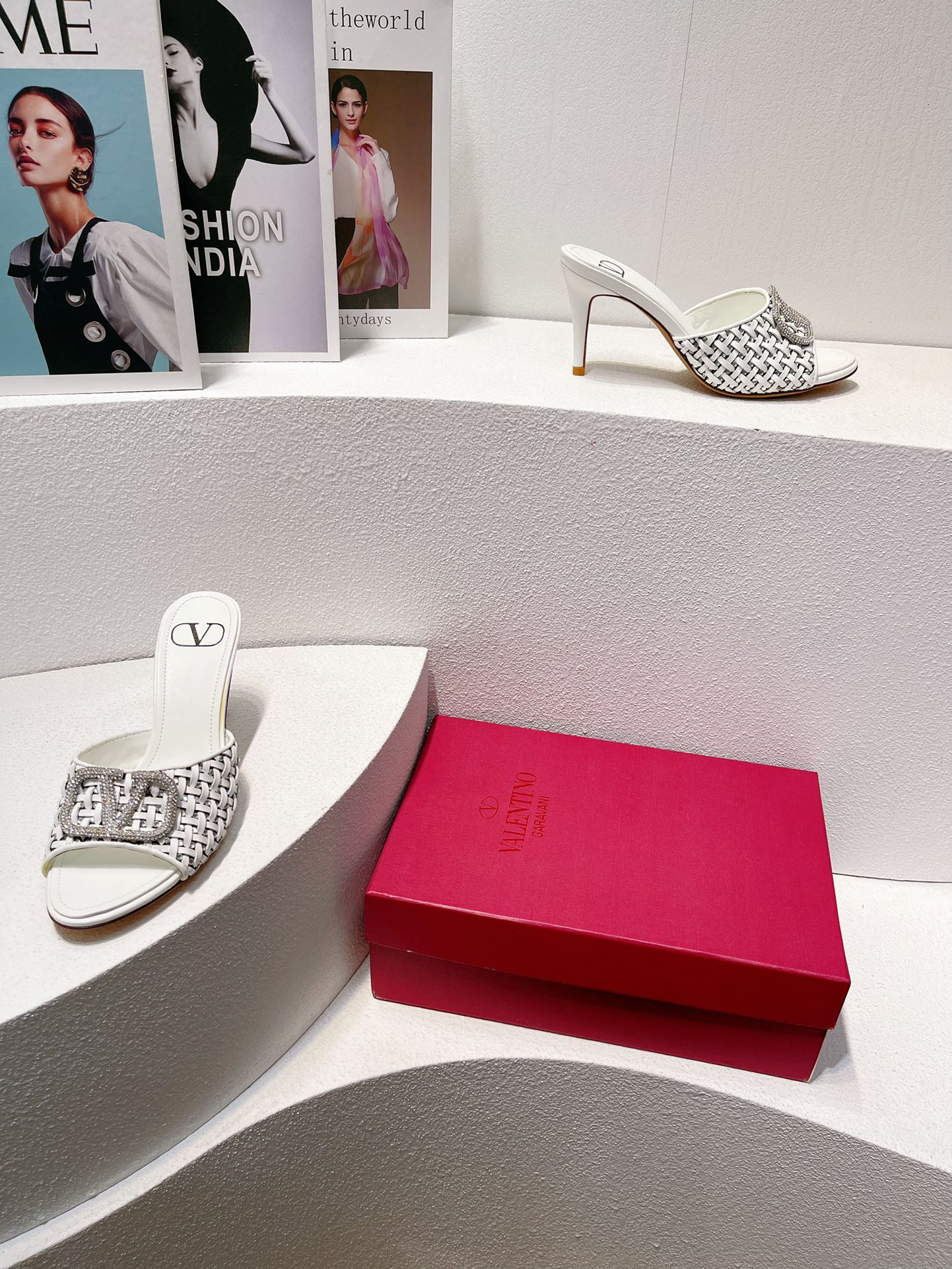 Vlogo Cut-Out White Calfskin Slide Sandal