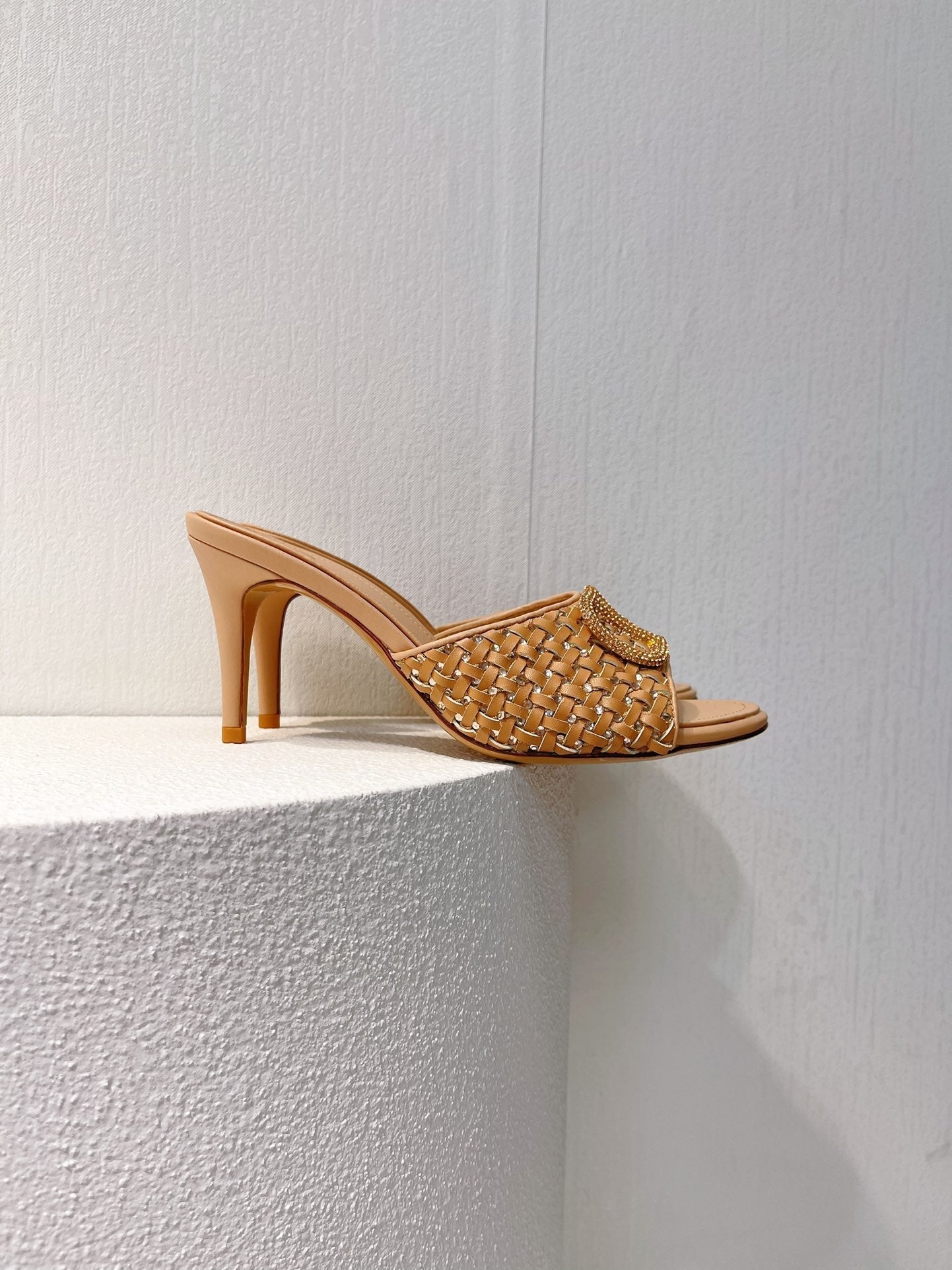 VT Sandals Heels 70mm Brown Cowhide 292783