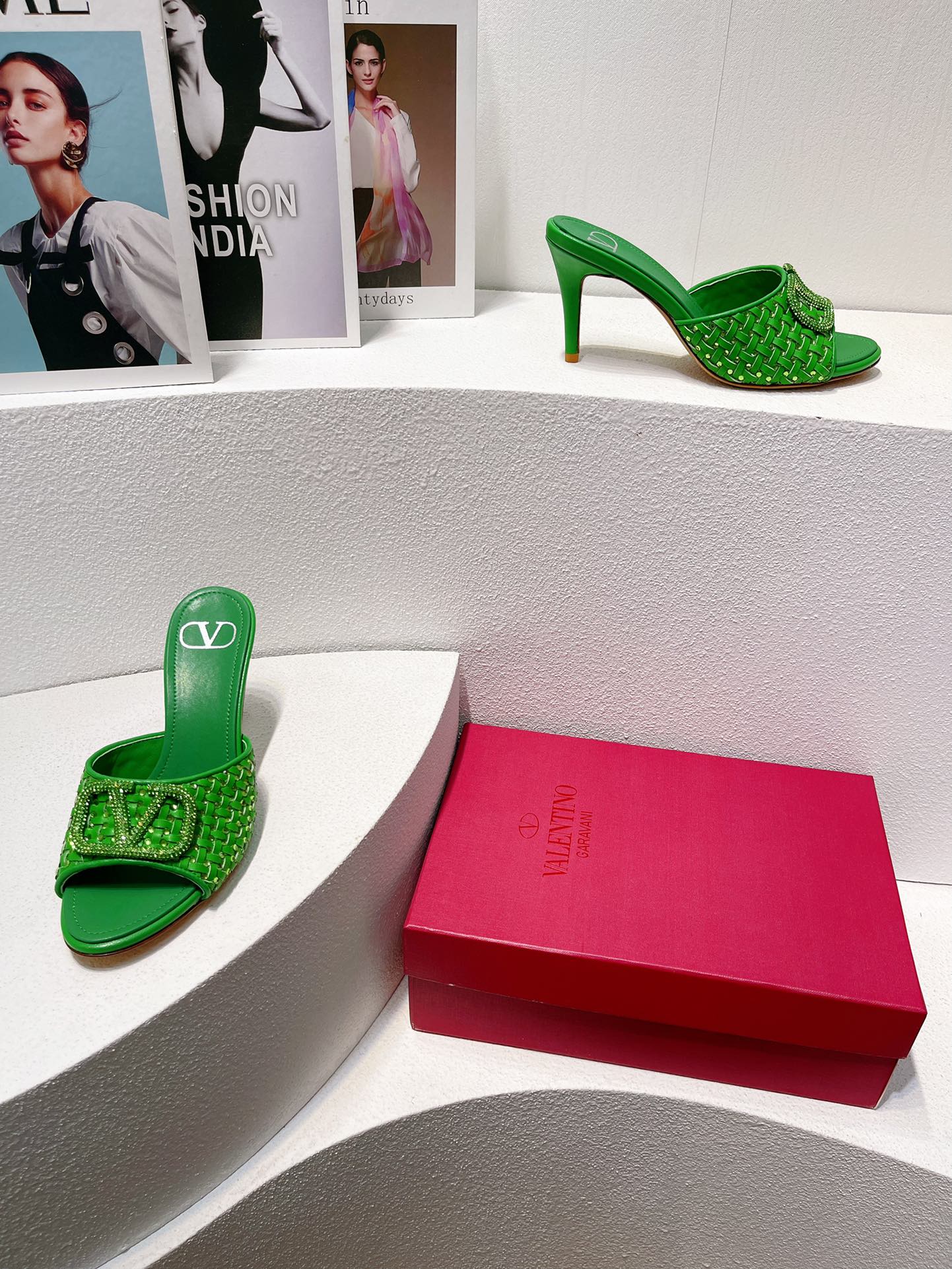 VT Sandals Heels 70mm Emerald Green Cowhide 292780