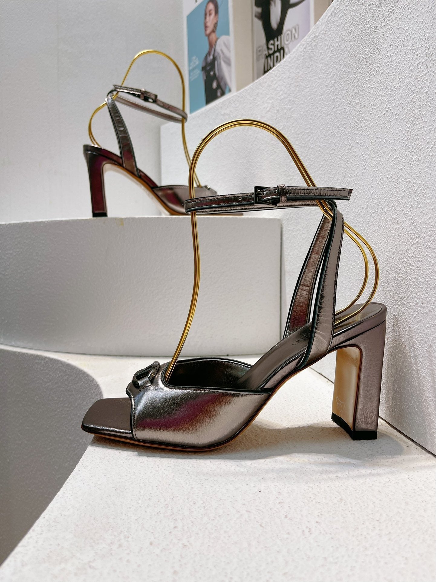 VT Sandals Heels 70mm Silver Cowhide 292785