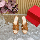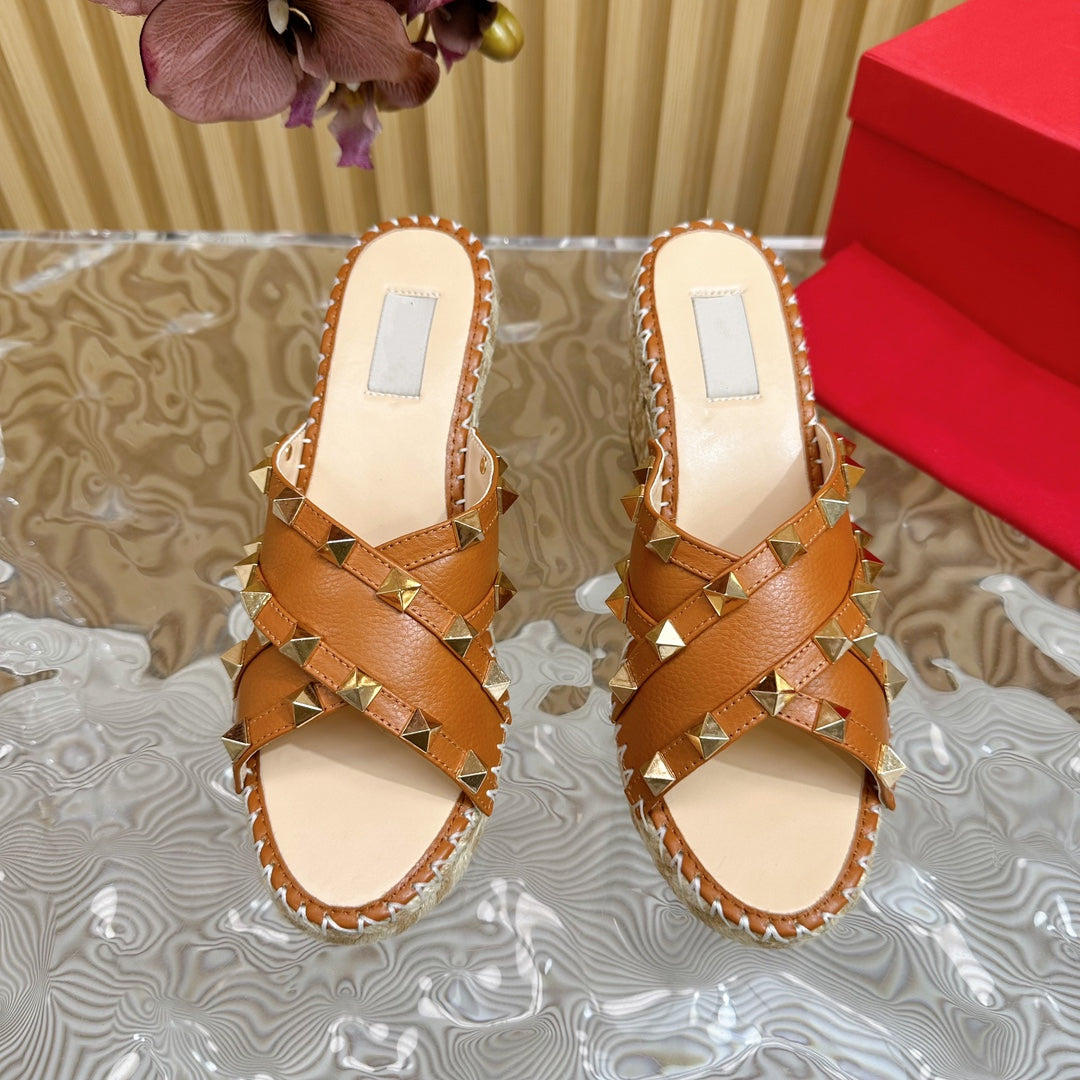 Rockstud Crisscross Espadrilles 80mm Sandal Wedges Brown