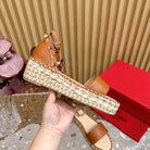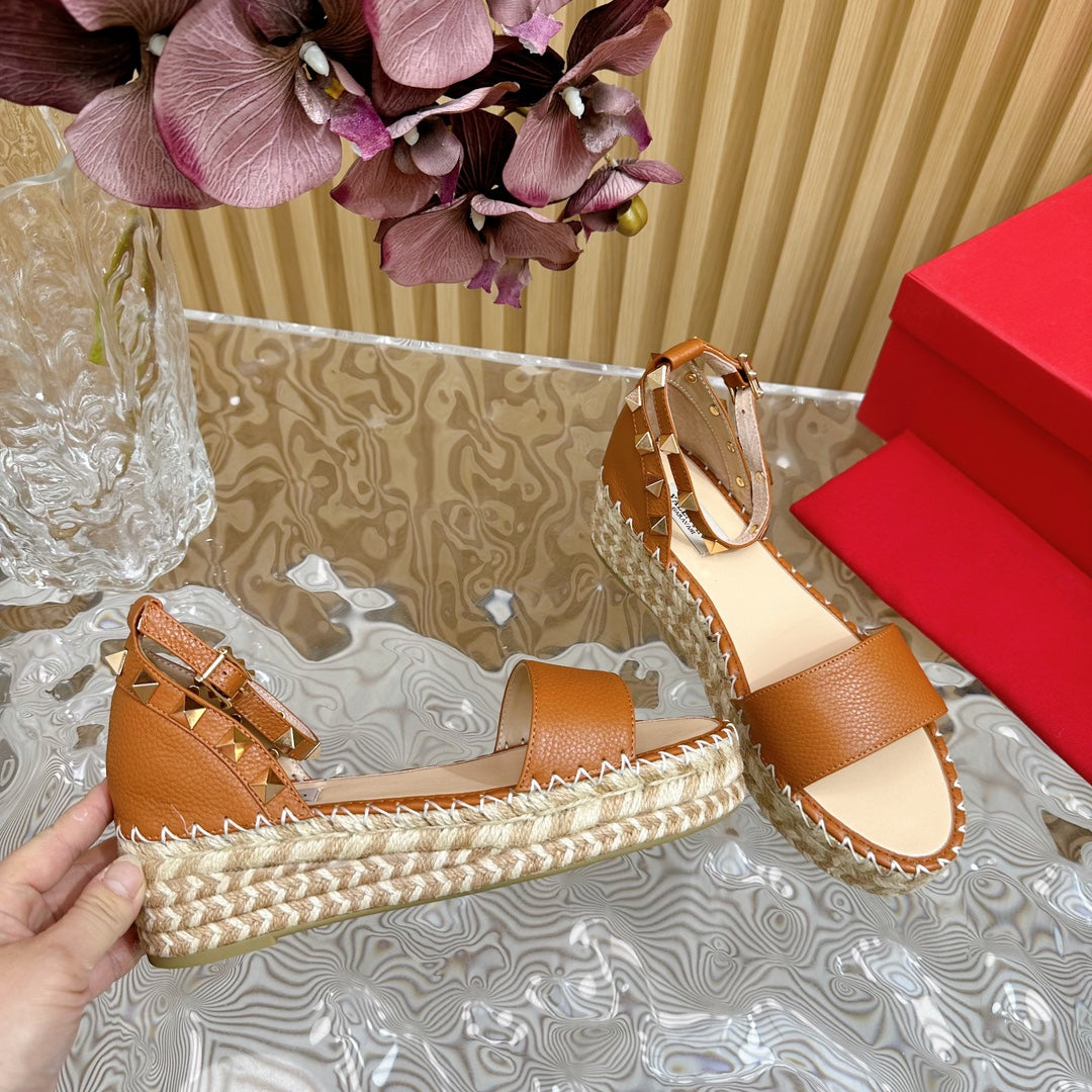 Rockstud Espadrille 45mm Brown leather sandals