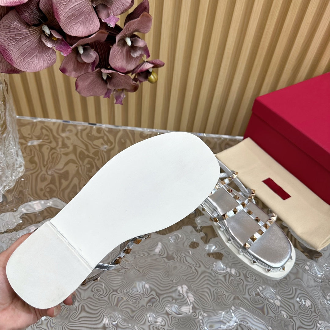 Rockstud M-Way Platform Sandal Grey Leather