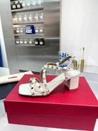 Rockstud sandals 60 with straps white beige calfskin