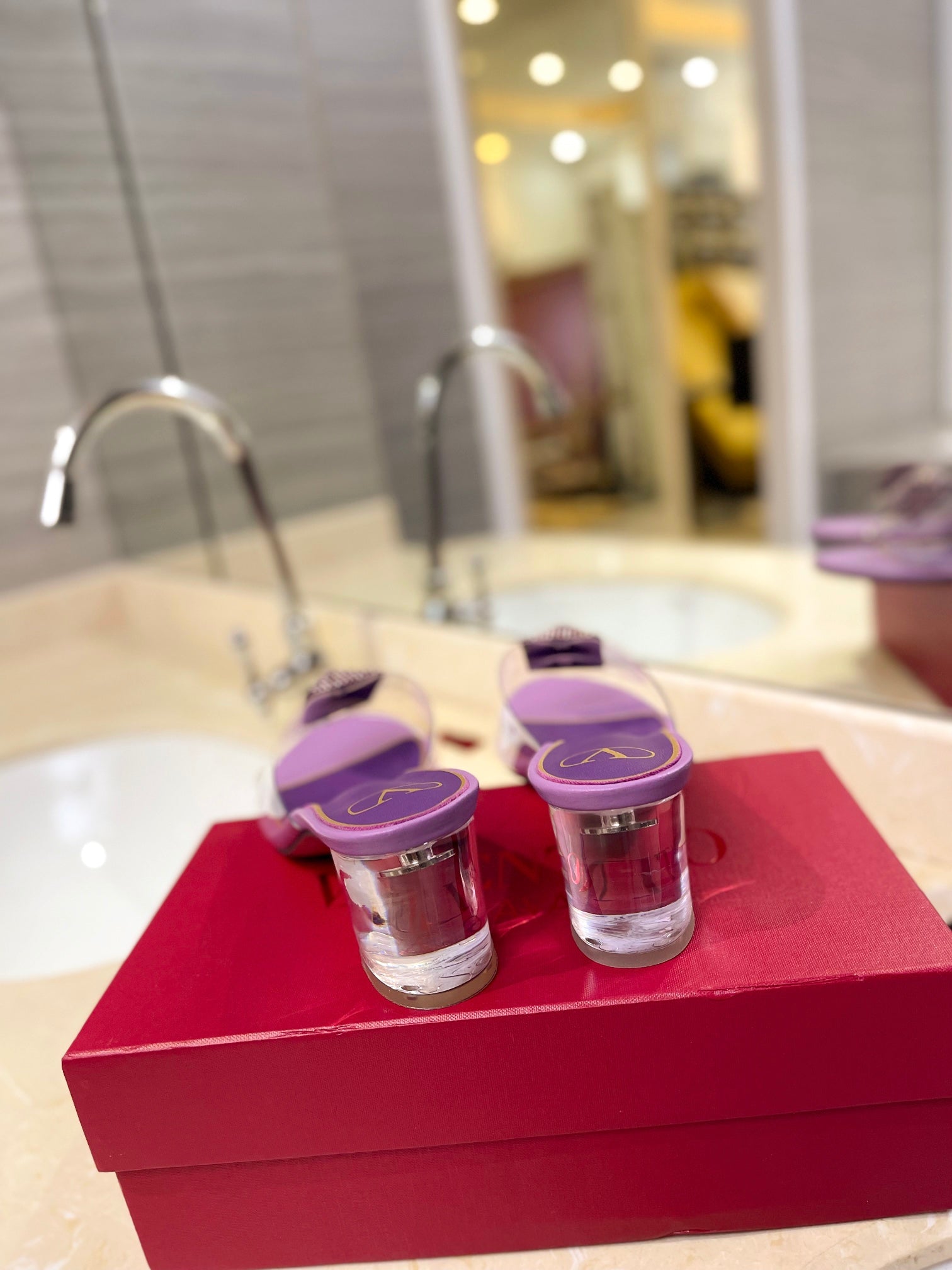 VLOGO SIGNATURE HIGH SHINE OPEN TOE SANDALS 60 MM IN CREPE PINK CALFSKIN