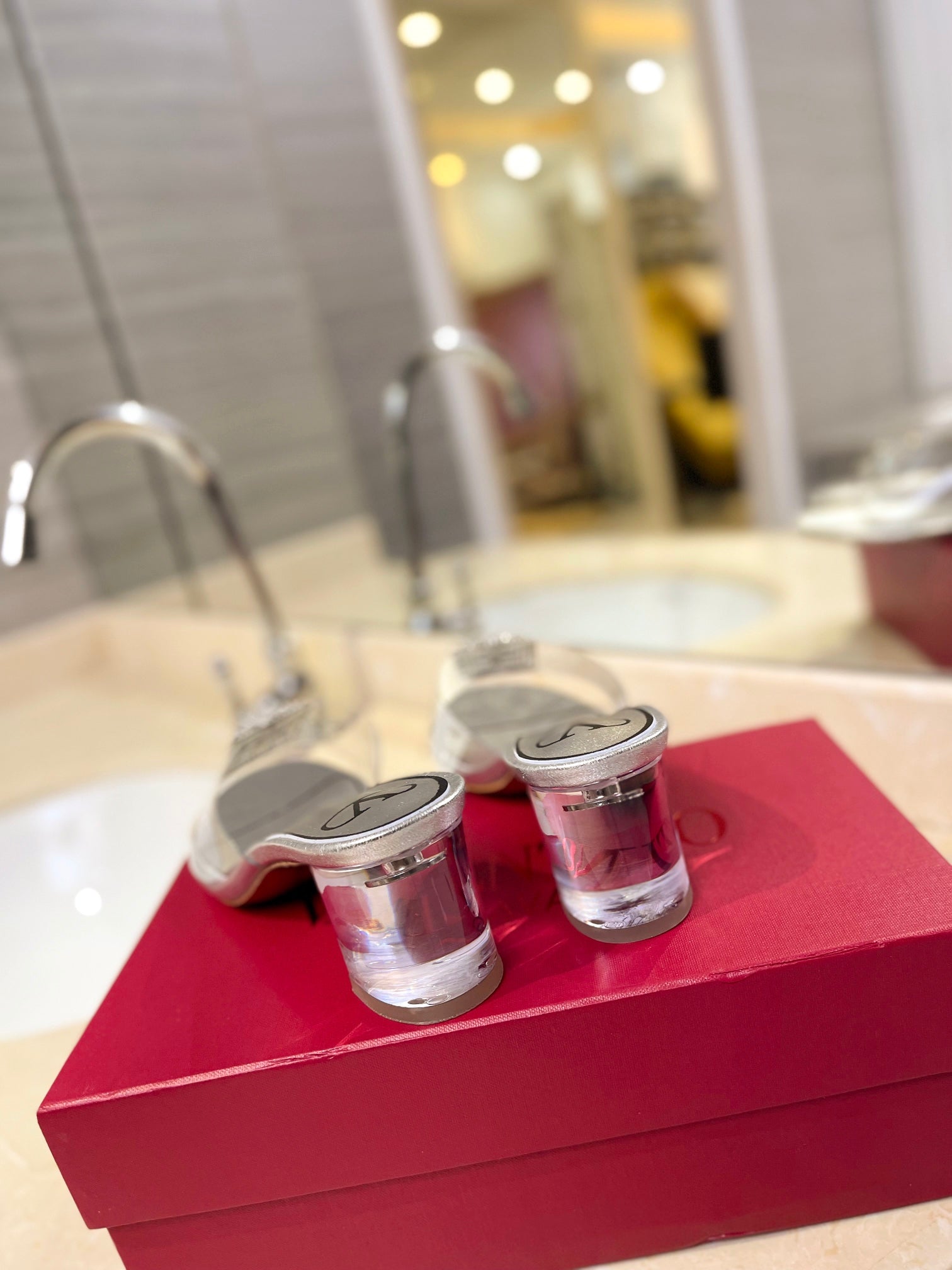 HIGH HEEL SANDAL 14CM IN SILVER CALFSKIN AND TRANSPARENT PVC
