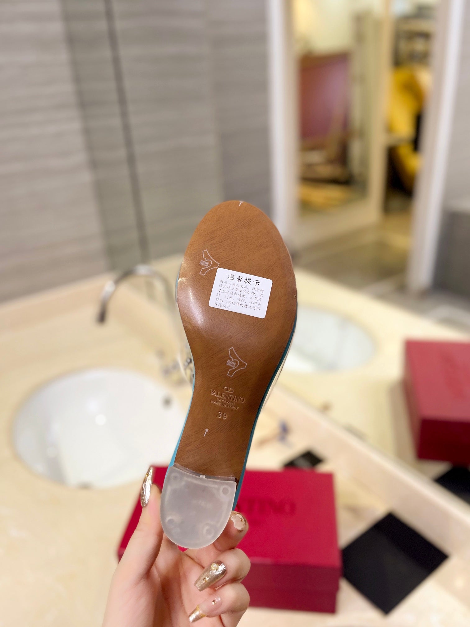 VLOGO SIGNATURE HIGH SHINE OPEN TOE SANDALS 60 MM IN PEGEON BLUE CALFSKIN