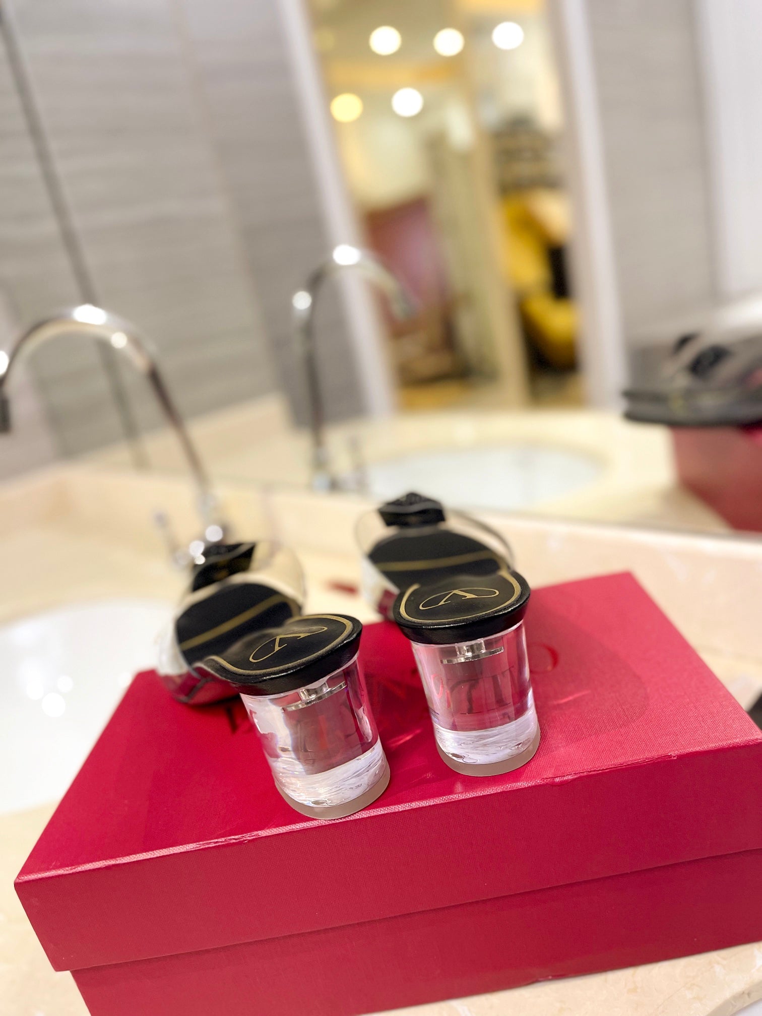 HIGH HEEL SANDAL 14CM IN BLACK CALFSKIN AND TRANSPARENT PVC