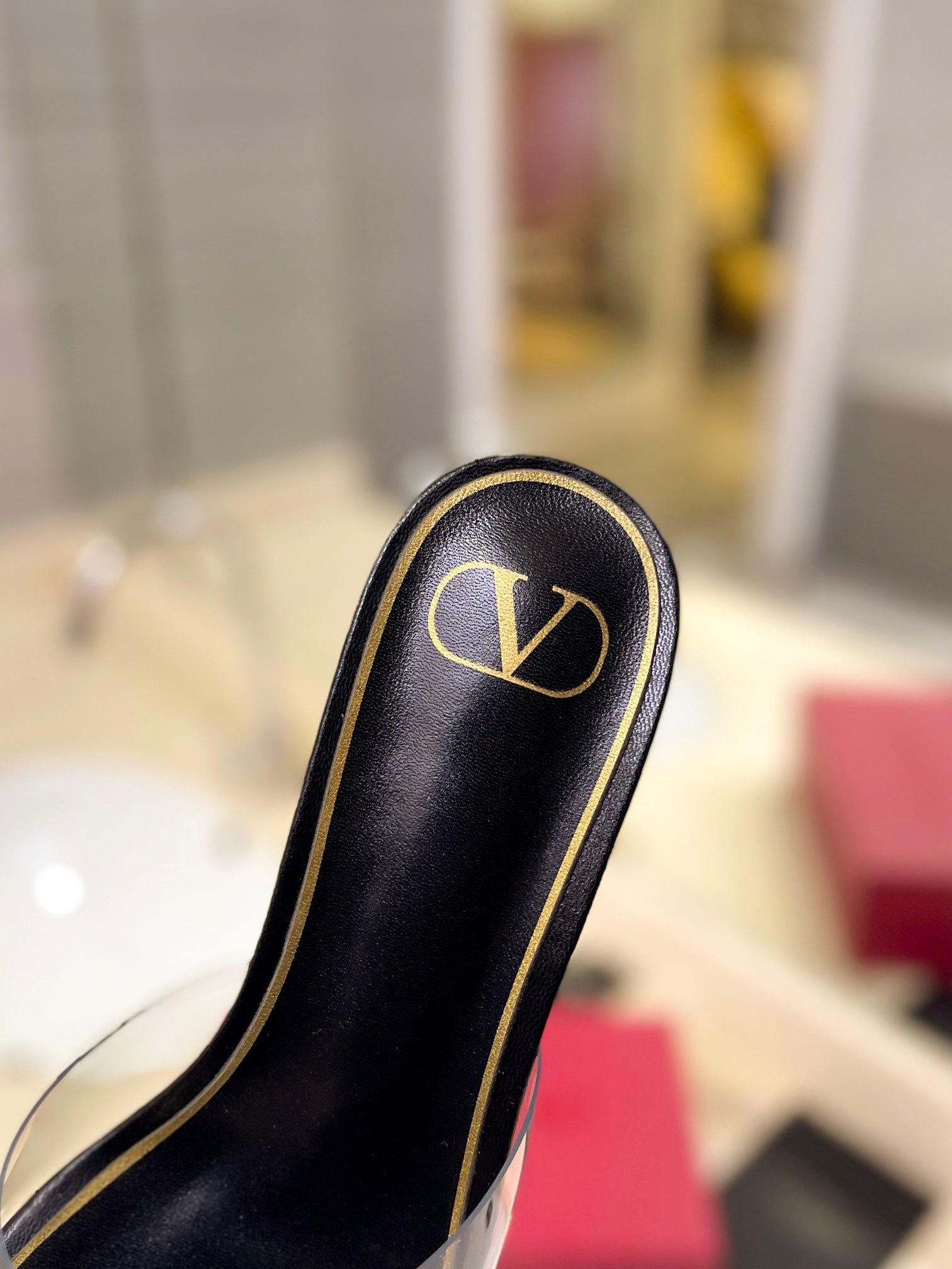 ROCKSTUD MULE SANDALS IN LIGHT PINK CALFSKIN AND TRANSPARENT PVC FILM