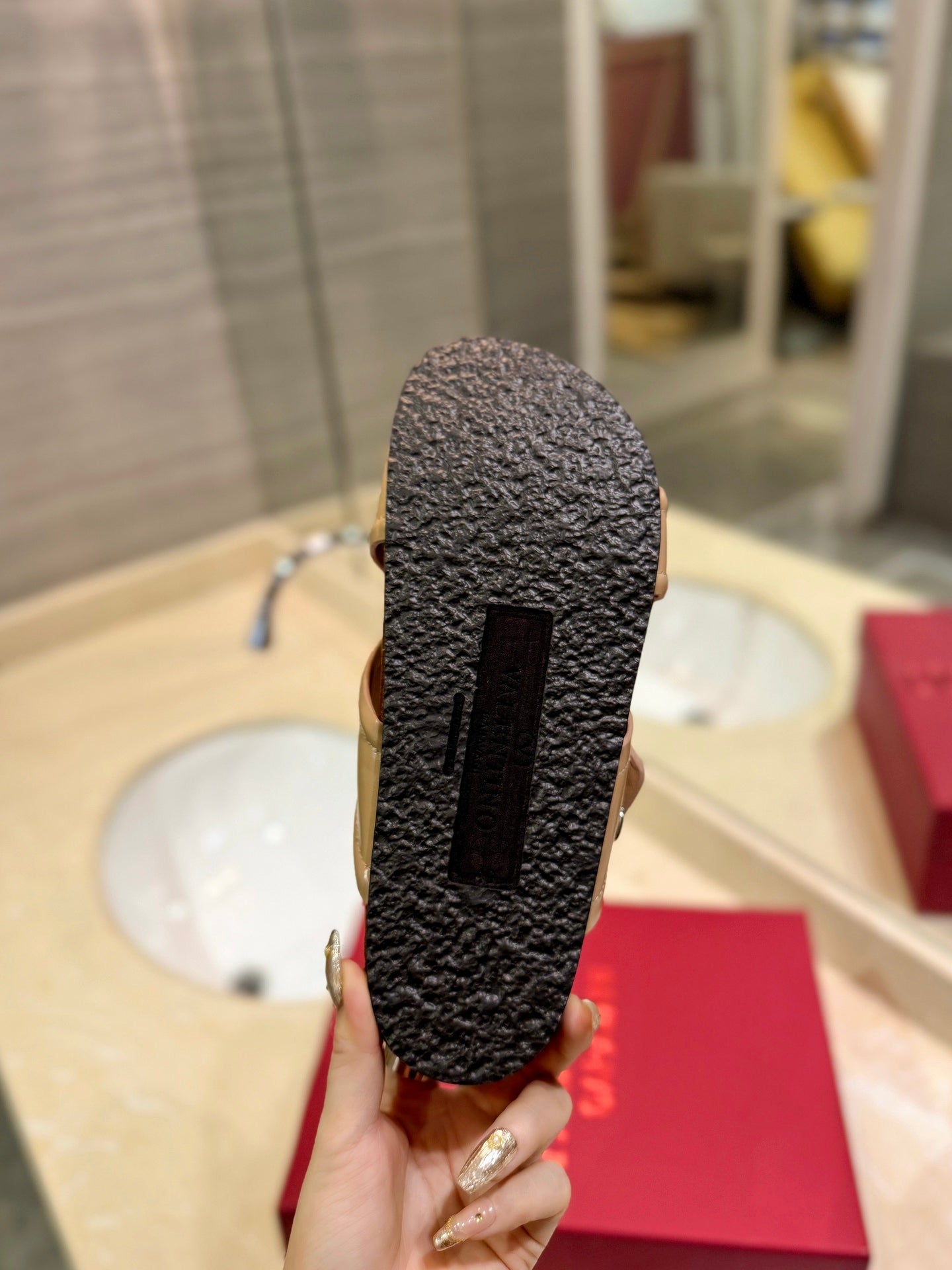 VLOGO CUT-OUT BRONZE BROWN CALFSKIN SLIDE SANDAL