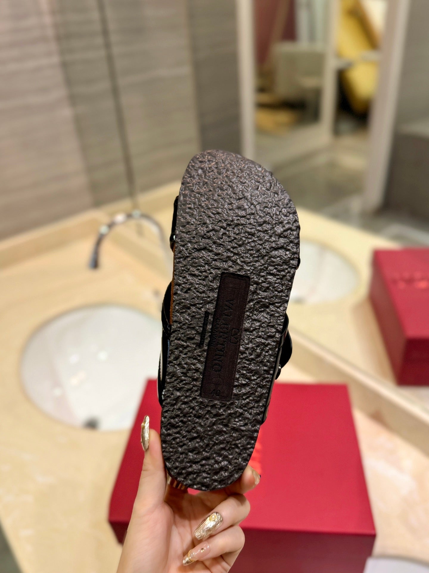 ROCKSTUD SANDAL WITH STRAP IN BLACK CALFSKIN 60 MM