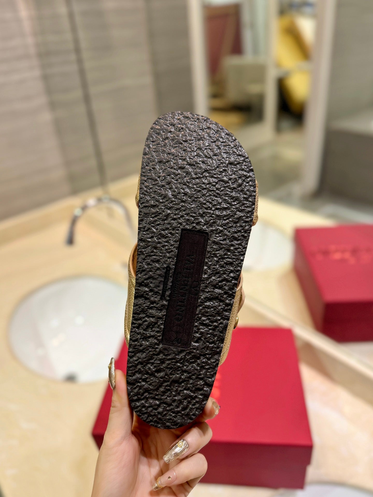 VLOGO SIGNATURE SLIDE SANDAL 60MM IN GOLD CALFSKIN