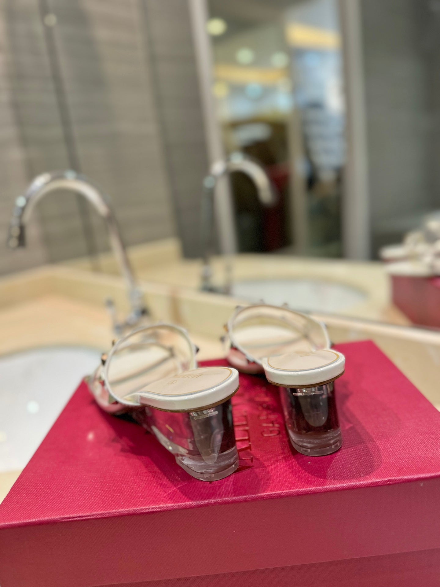 HIGH SANDAL 14CM IN GOLD CALFSKIN AND TRANSPARENT PVC