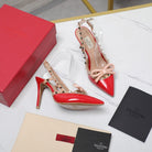 ROCKSTUD BOW SLINGBACK CHERRY RED PATENT LEATHER PUMP 95MM