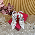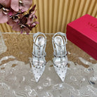 ROCKSTUD MIRROR-EFFECT PUMP WITH MATCHING STRAPS AND STUDS 95 MM SILVER CALFSKIN AND MESH