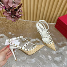Rockstud Pump In Dark Beige Mix White Pied-de-poule Fabric And Cowhide 95mm 102083