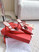 Rockstud Wispy Calfskin Mule 90mm Matte Red