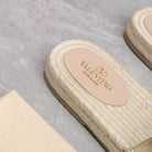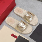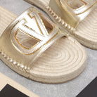Vlogo Cut-Out Slide 20 Gold Calfskin Beige Sole Raffia