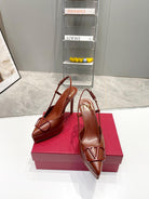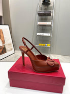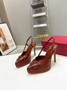 vlogo signature all brown calfskin slingback platform pump 120mm