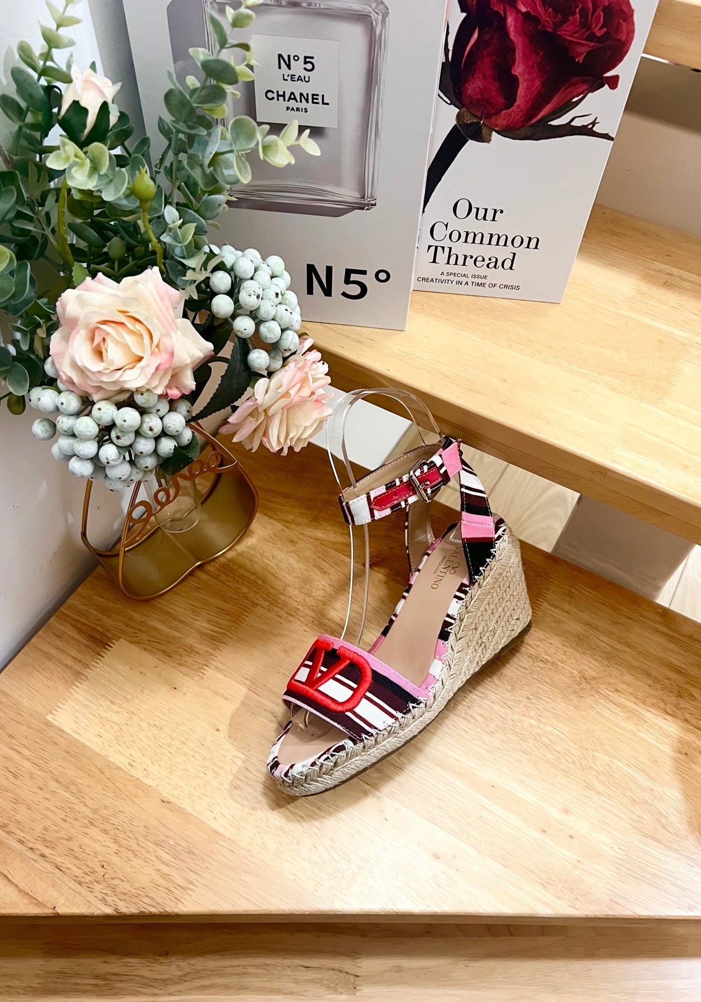 Valentino Wedge Sandals Multicolor Canvas 240576
