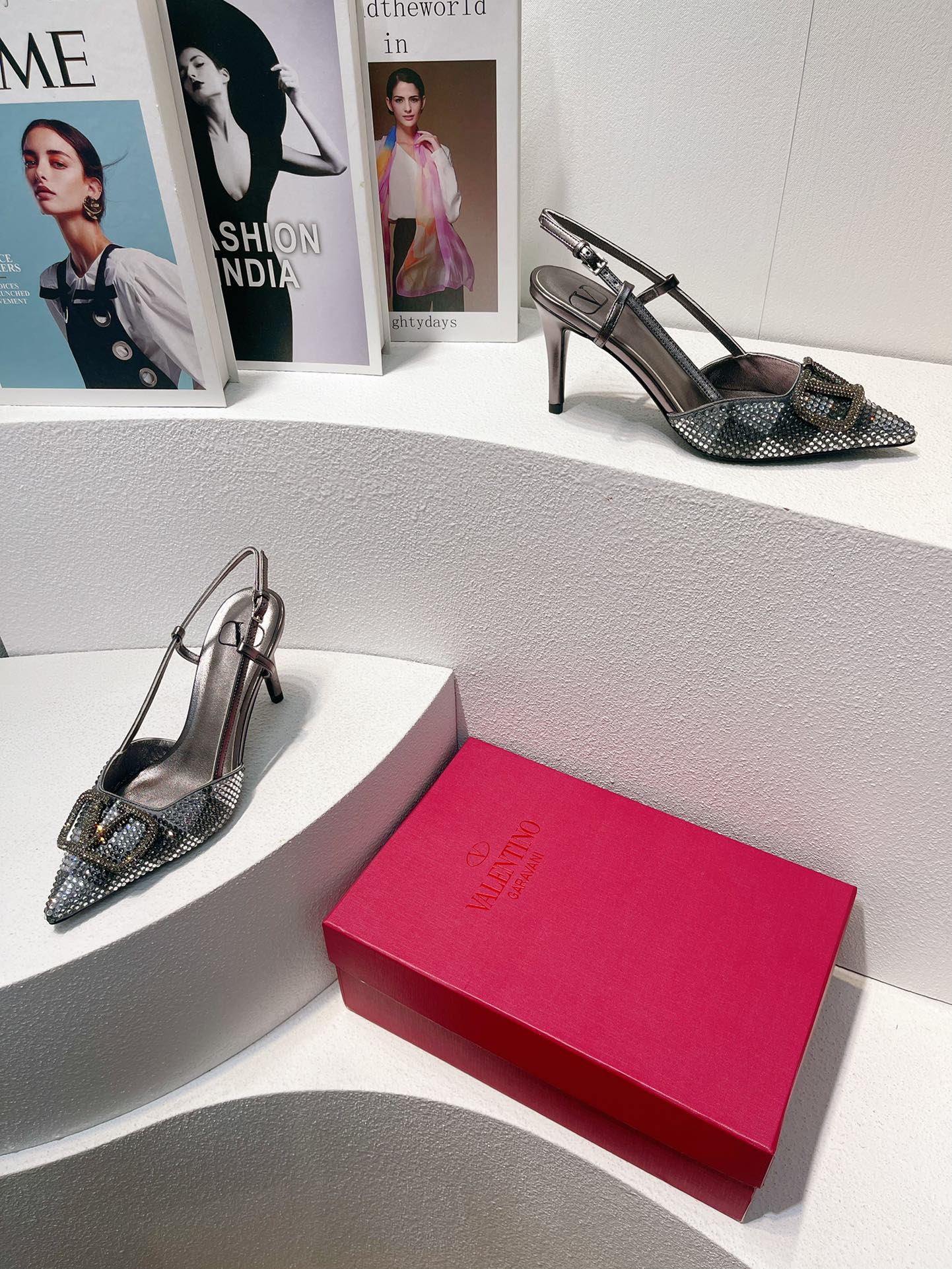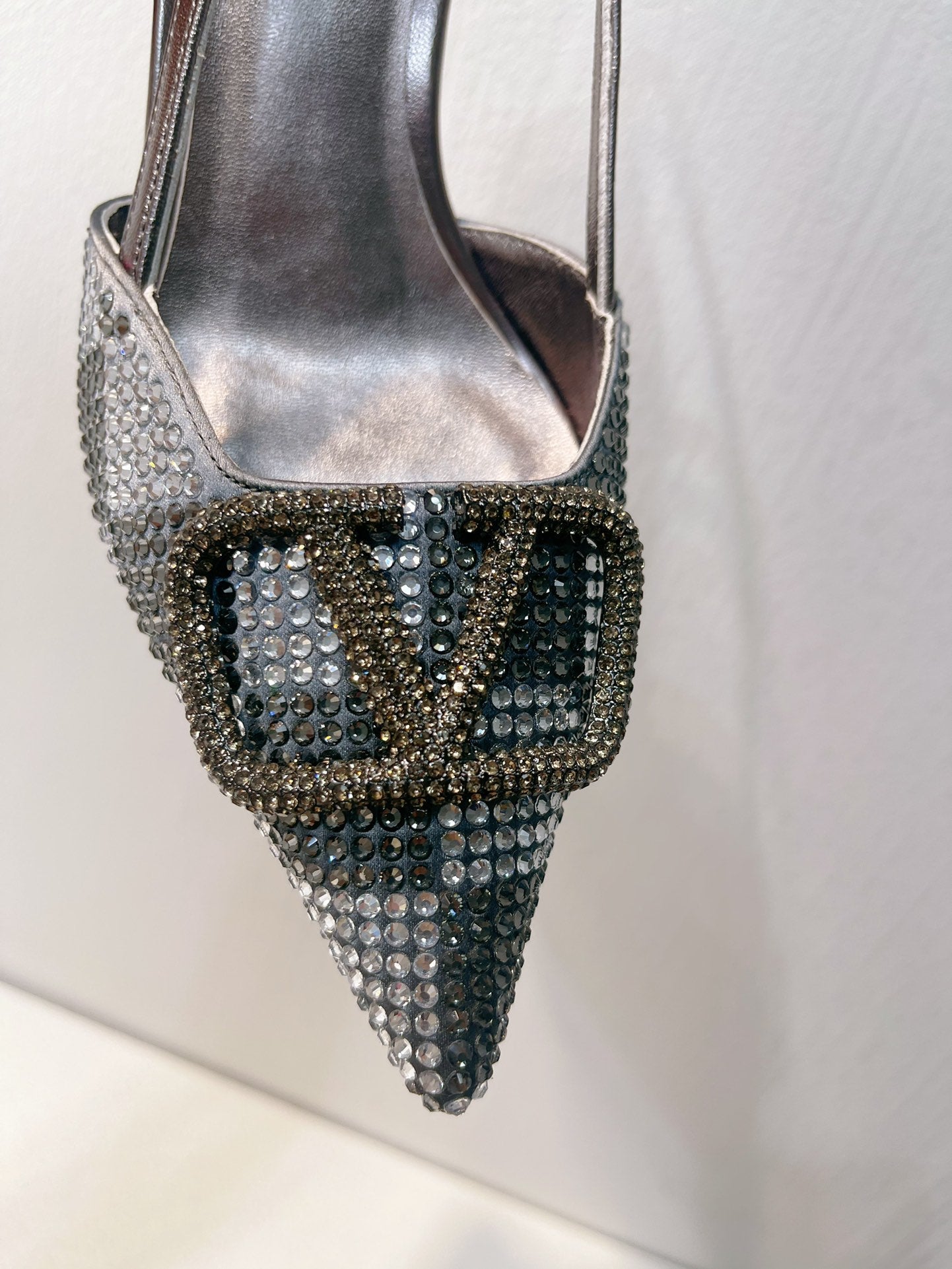 VT High Heeled Slingbacks Silver Sheepskin 292823