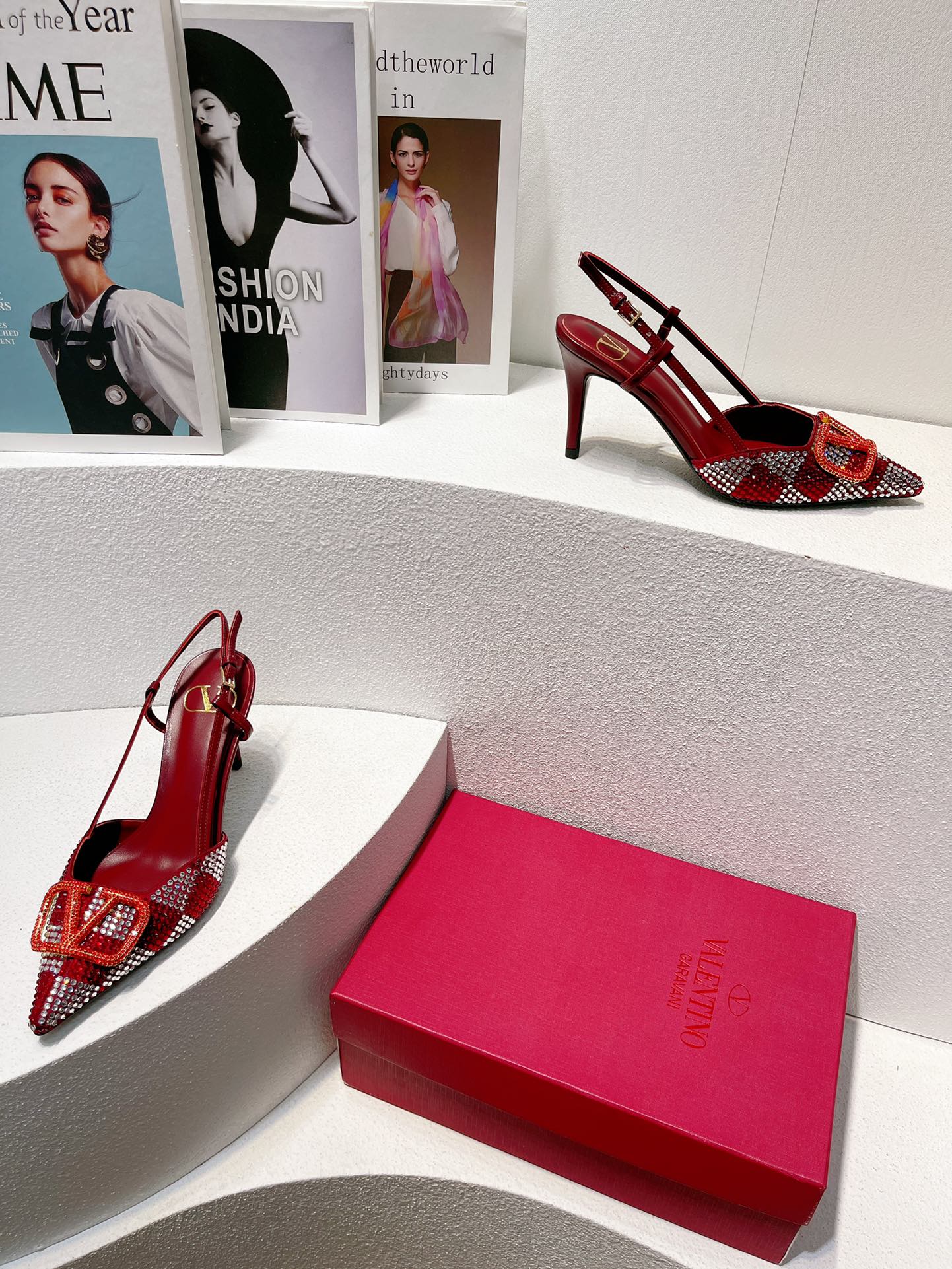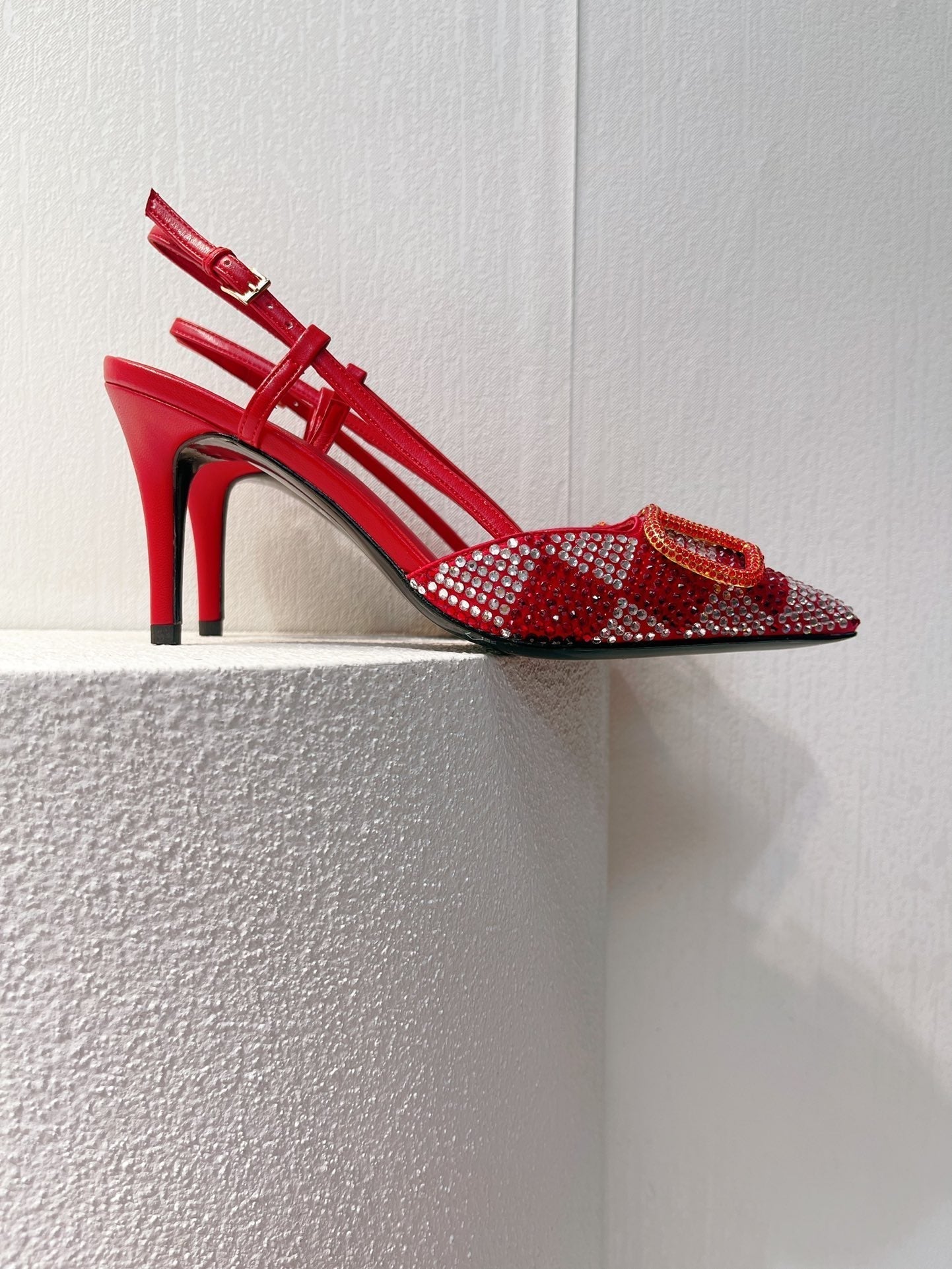 VT High Heeled Slingbacks Red Sheepskin 292816