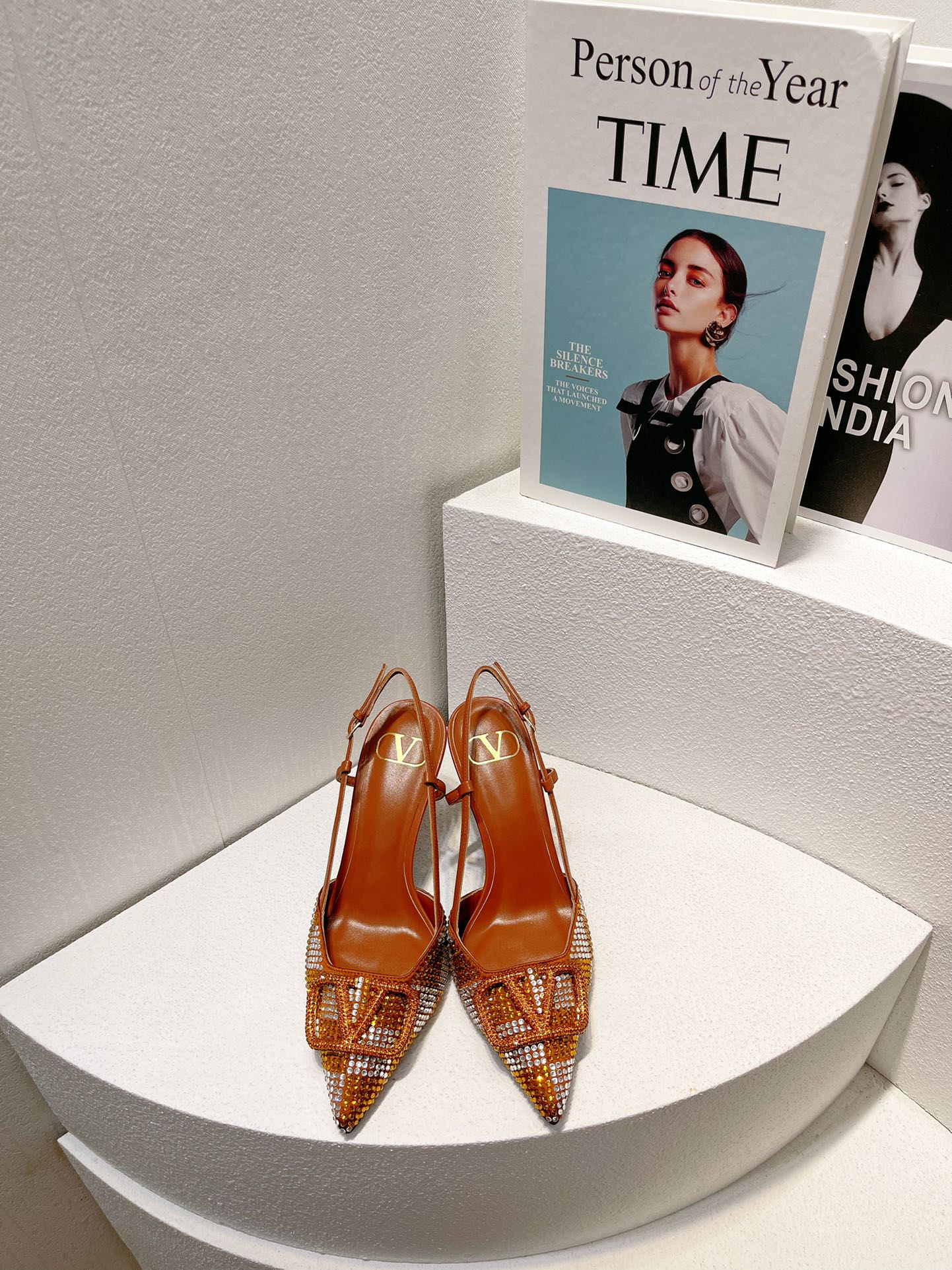 VT High Heeled Slingbacks Brown Chocolate Sheepskin 292826