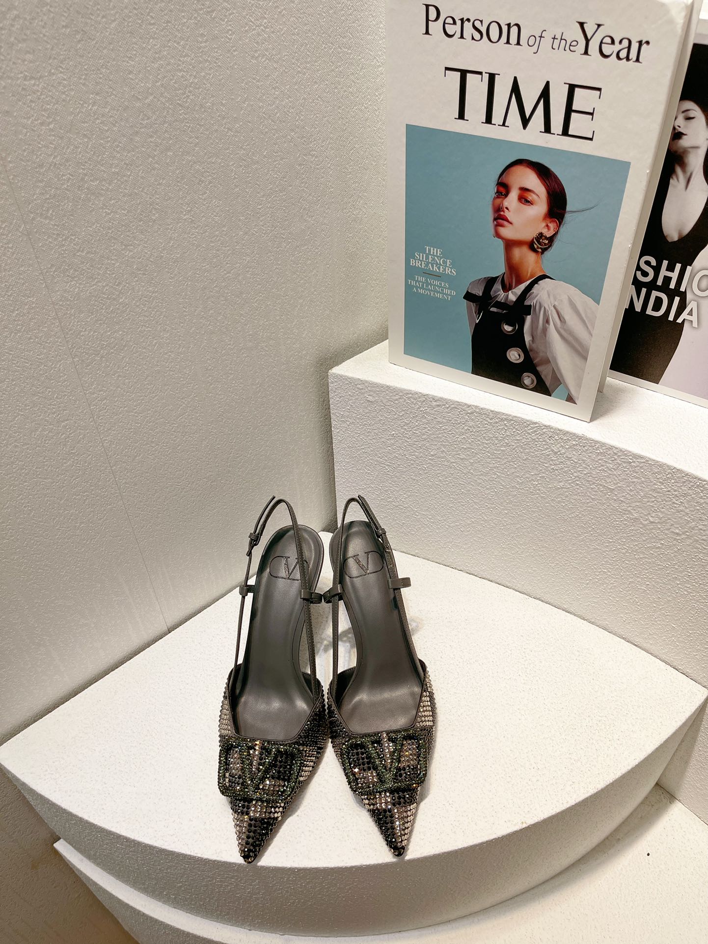VT High Heeled Slingbacks Gray Sheepskin 292815