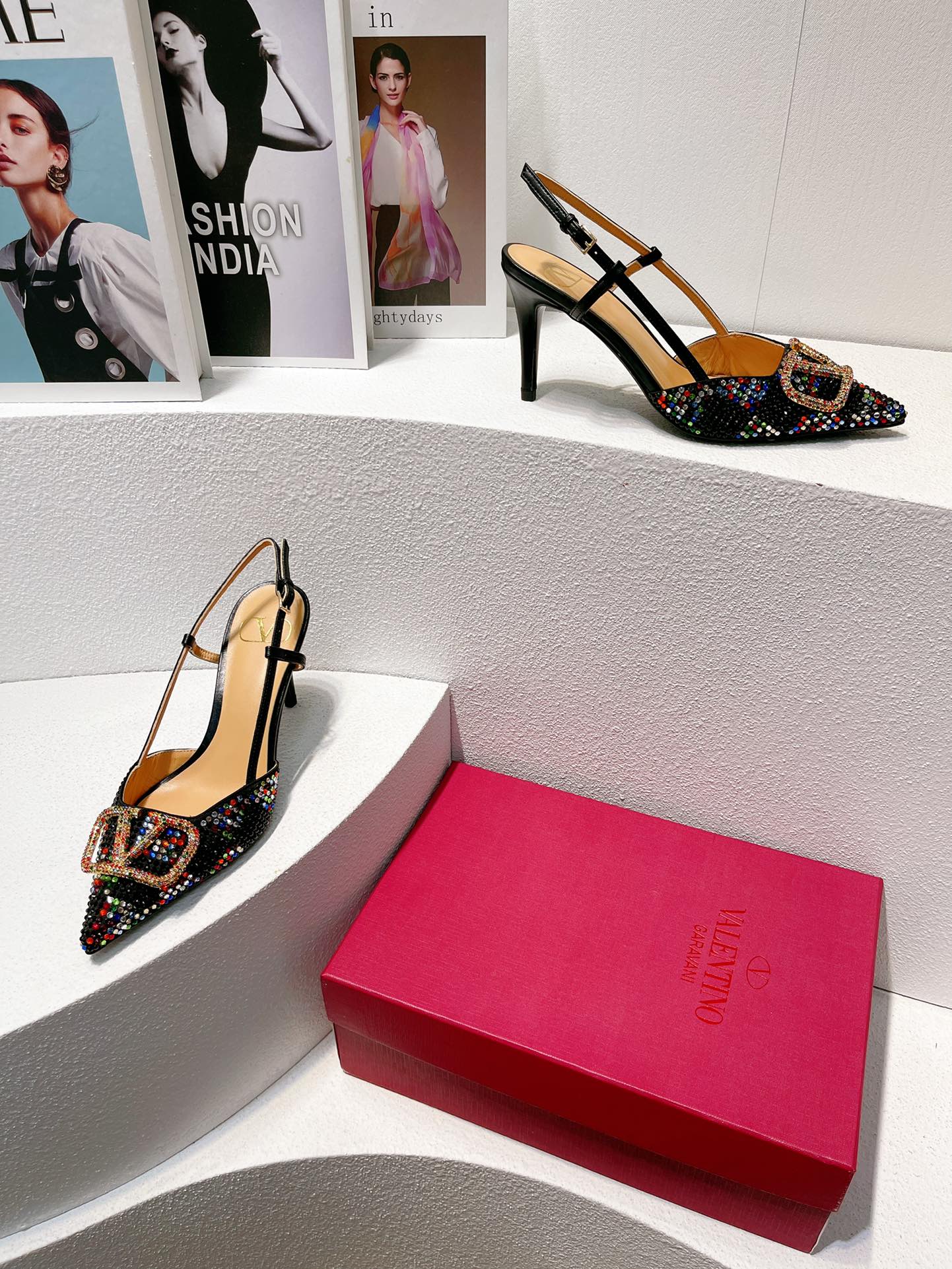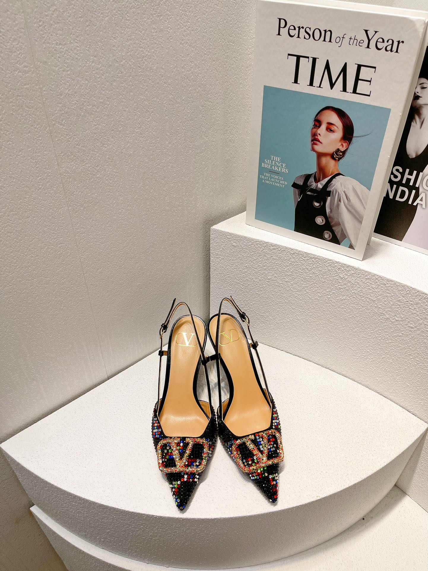 VT High Heeled Slingbacks Black Sheepskin 292828
