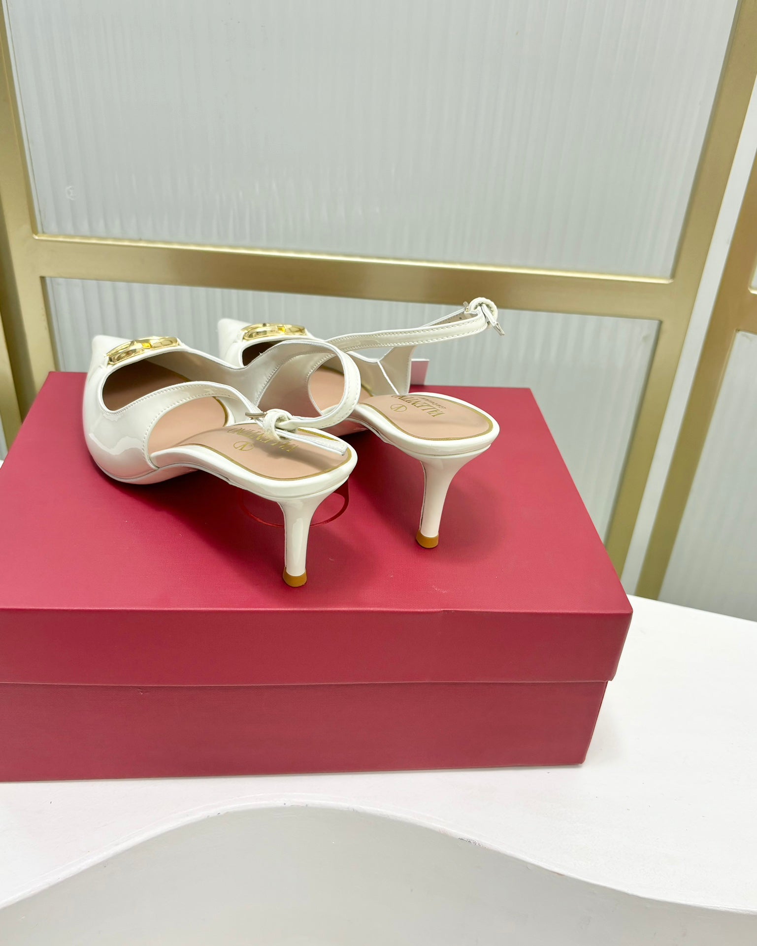 VLOGO SLINGBACK PUMP IN WHITE CALFSKIN LEATHER