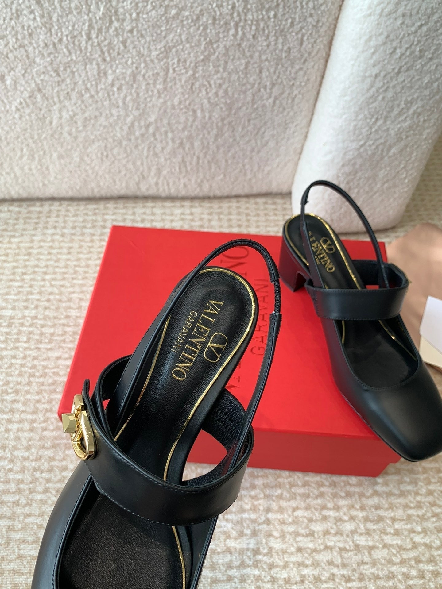 VLOGO SLINGBACK PUMP IN BLACK CALFSKIN LEATHER WITH GOLD LOGO