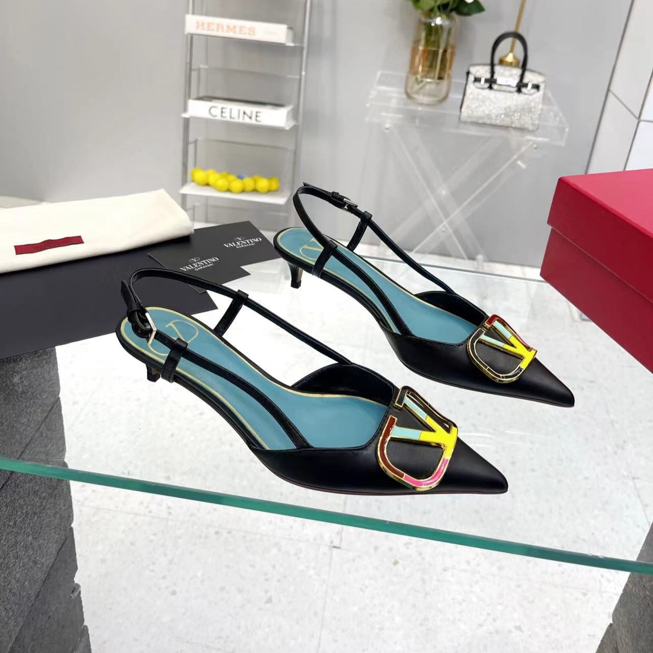 VT Vlogo Signature 75mm Black Slingback Sheepskin
