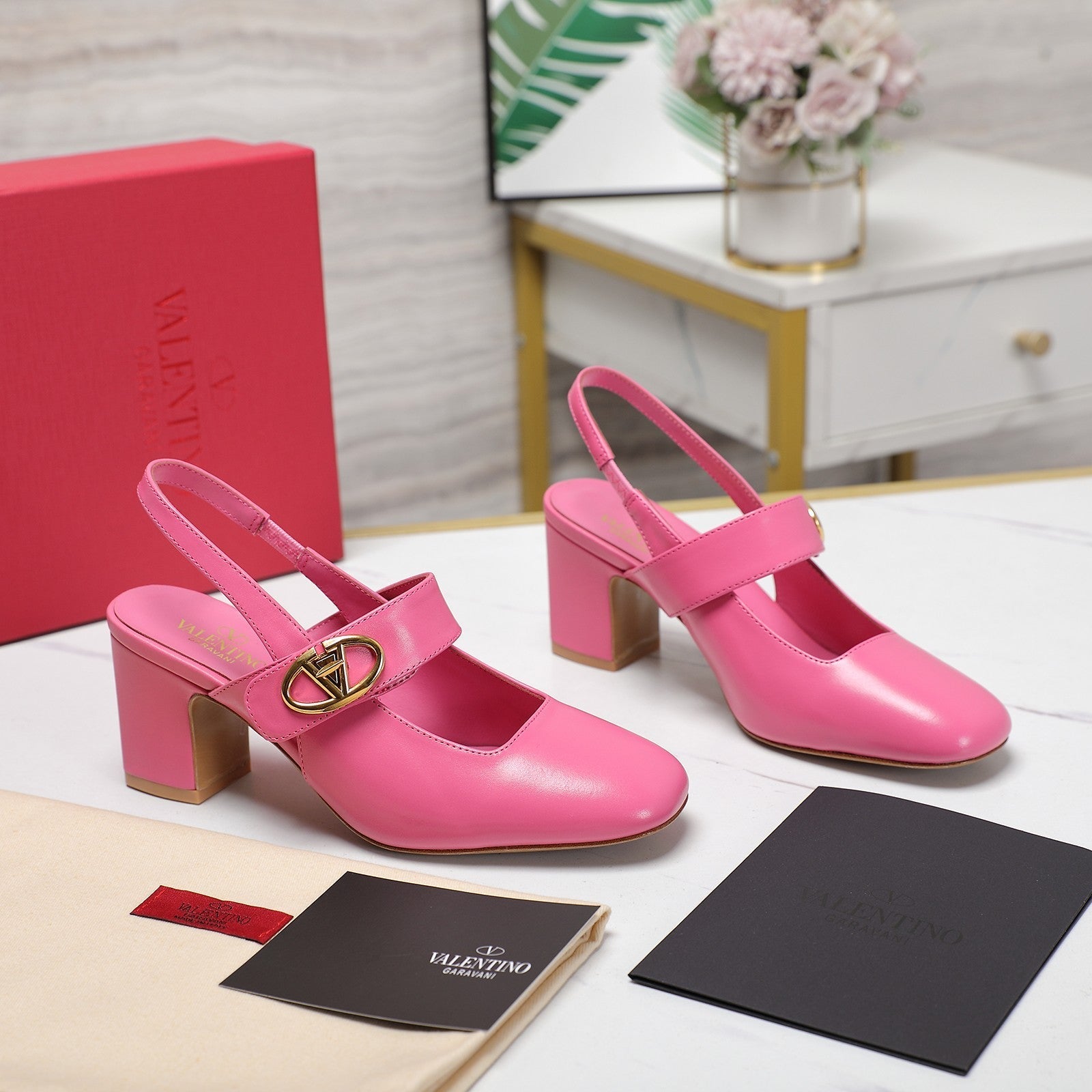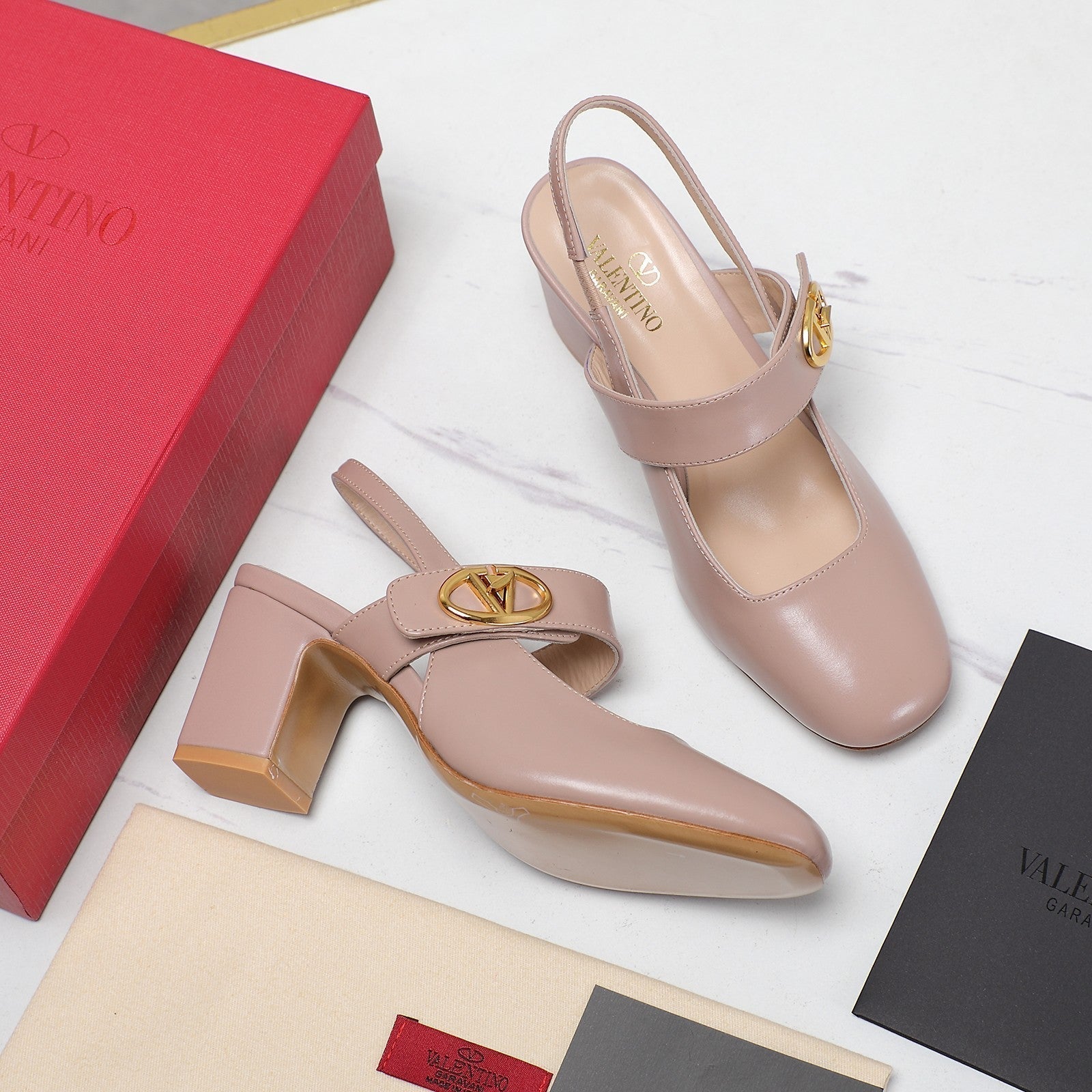VT Vlogo Signature 75mm Pink White Slingback Sheepskin