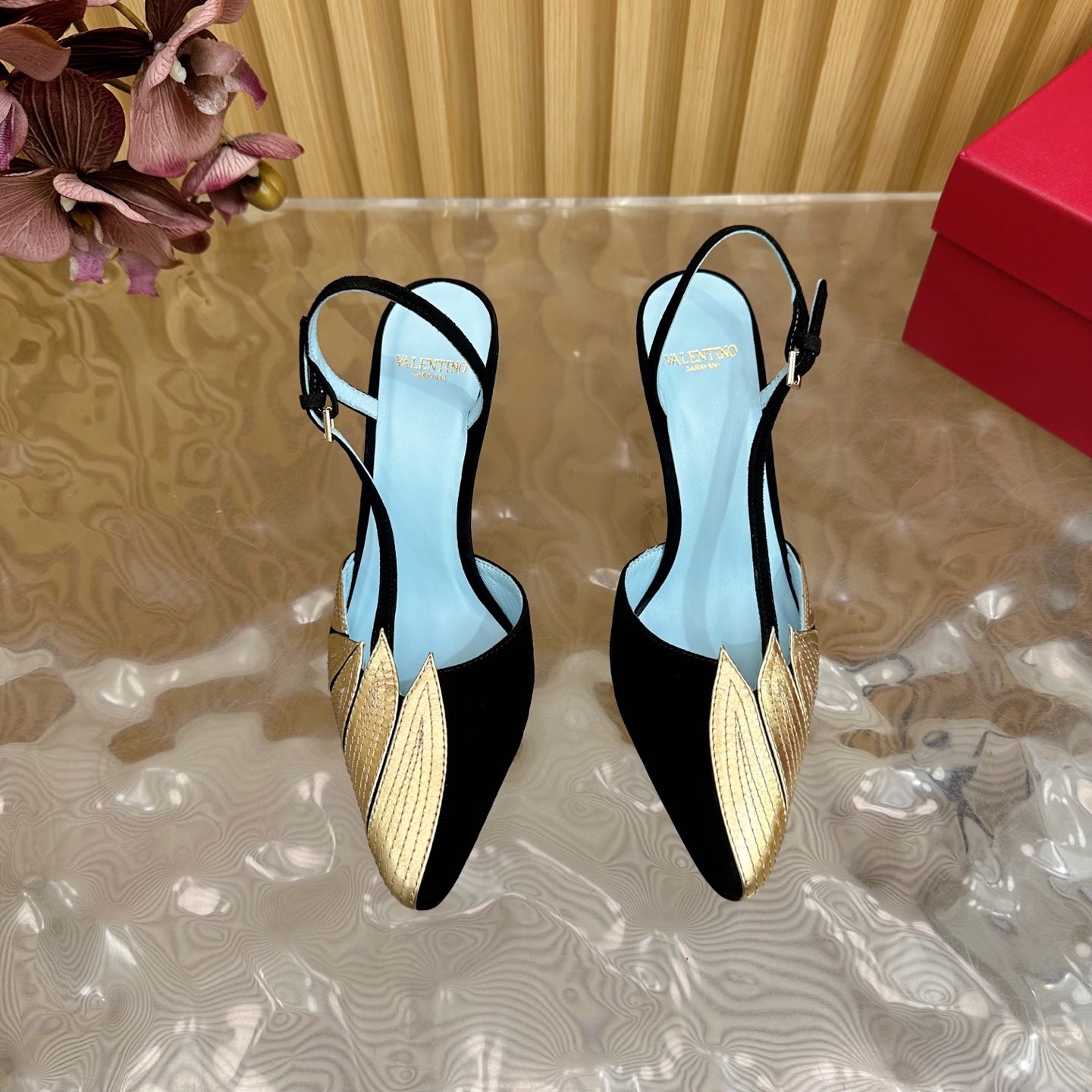 VT 25 Foil foliage Slingback Black Gold Cowhide