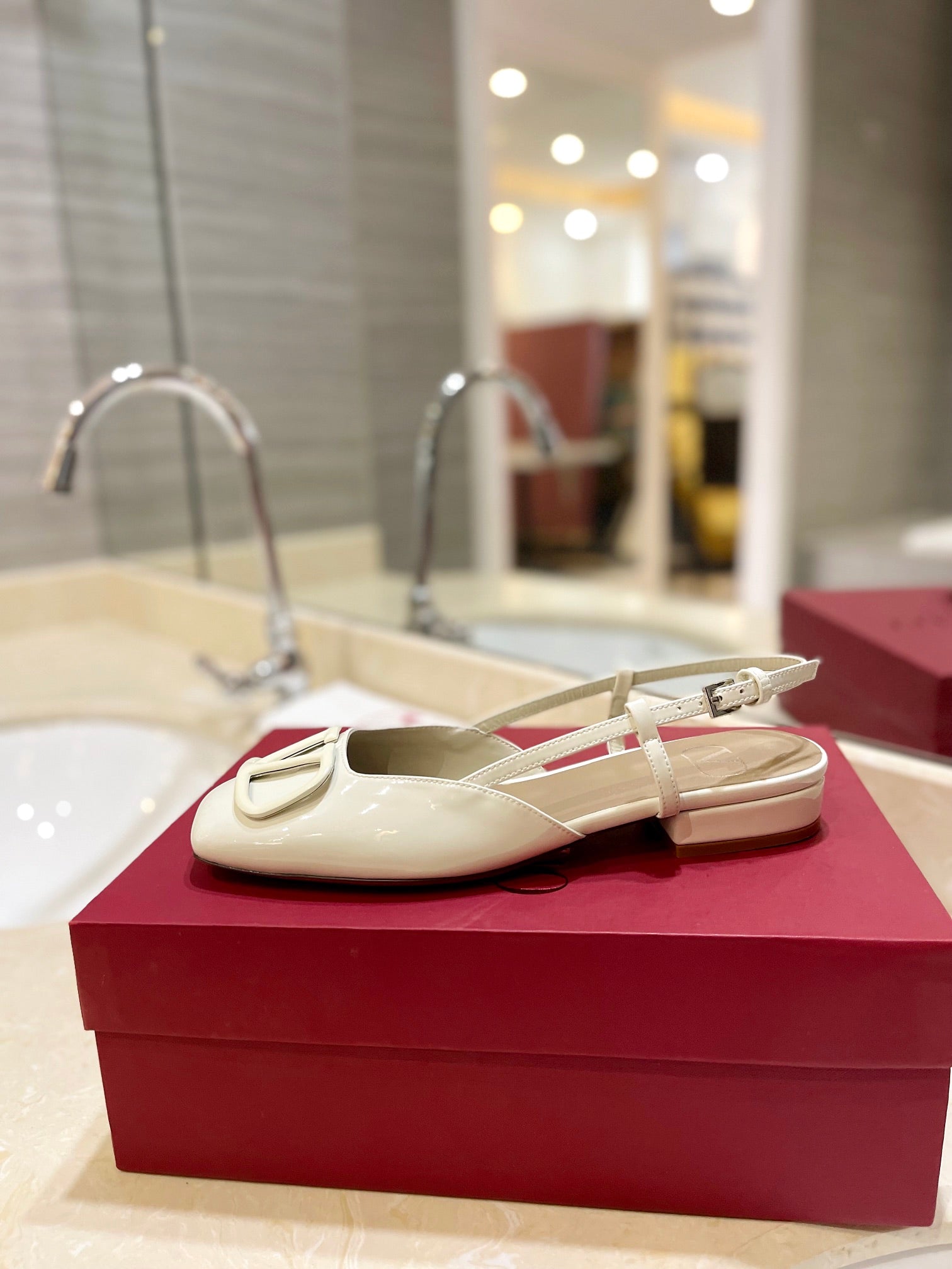 VLOGO WHITE PATENT LEATHER SLINGBACK FLATS