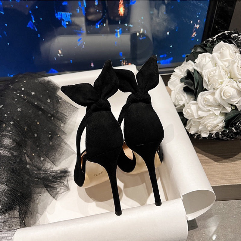 VLOGO BLACK LEATHER SLINGBACK FLATS
