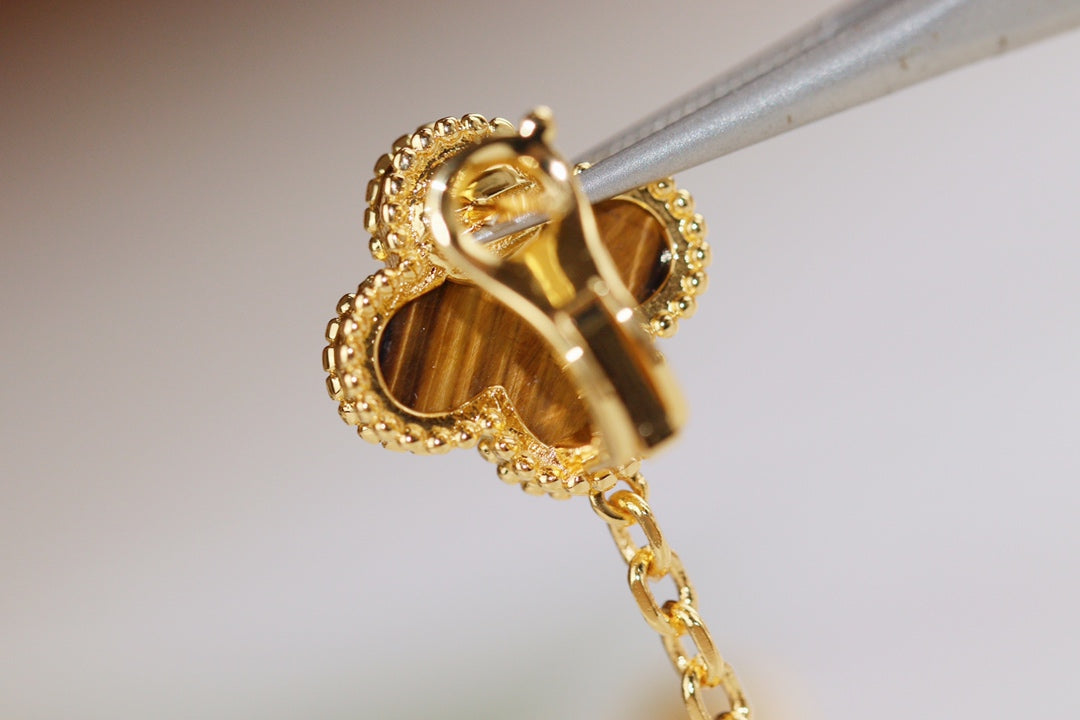 CLOVER EARRINGS GOLD TIGER EYE CARNELIAN 2 MOTIF