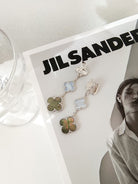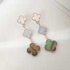 CLOVER 3 MOTIFS CHALCEDONY DARK MOP SILVER EARRINGS