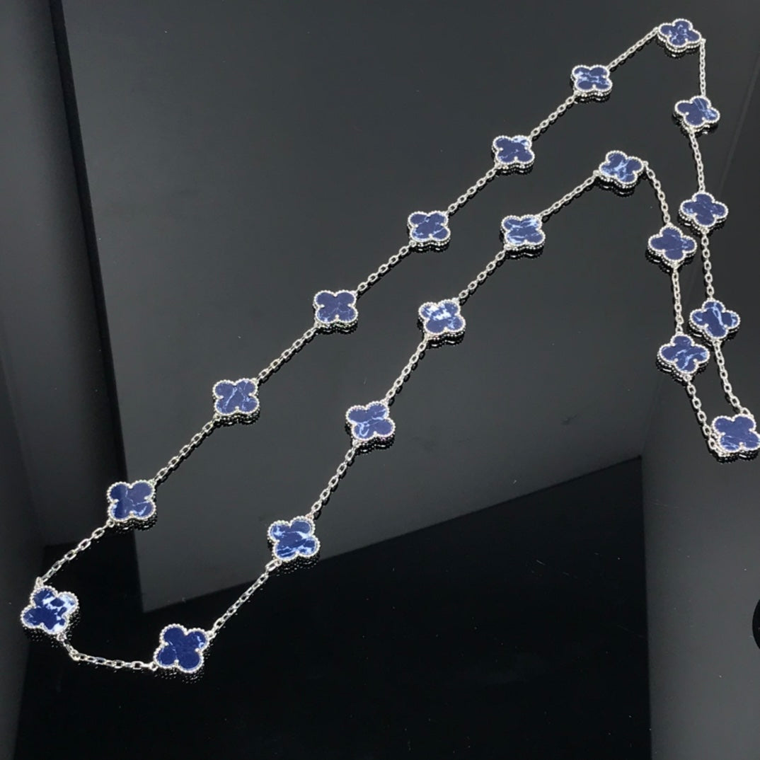 CLOVER 16 MOTIF CHALCEDONY MOP SILVER NECKLACE