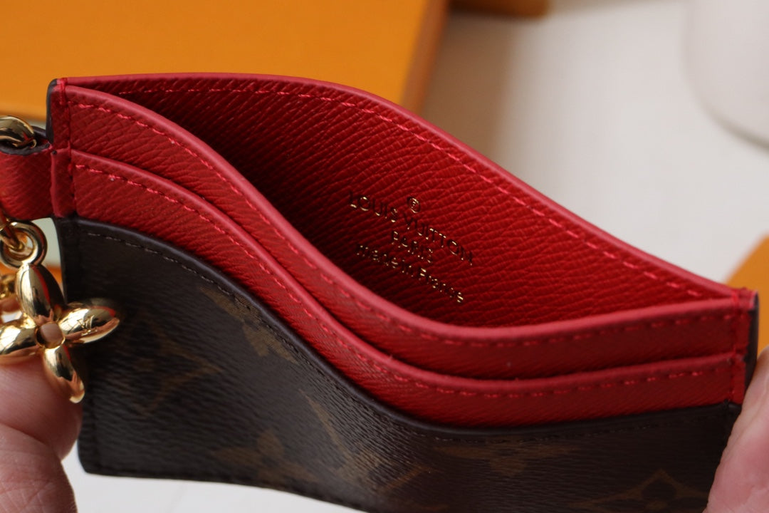 CHARM CARD HOLDER BROWN RED MONOGRAM CANVAS