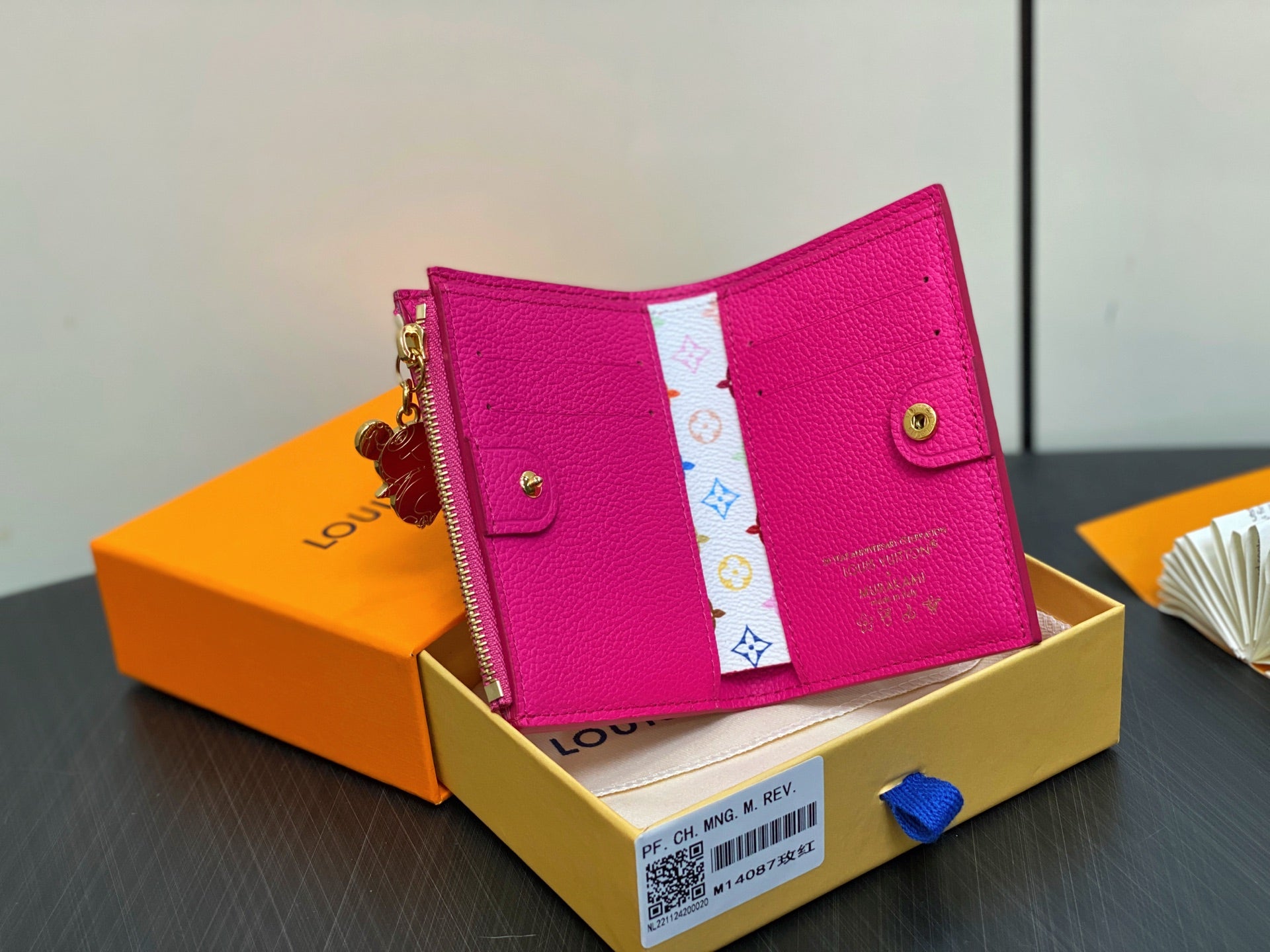 LV × TM Zipper Wallet Pink Gold Leather 329895