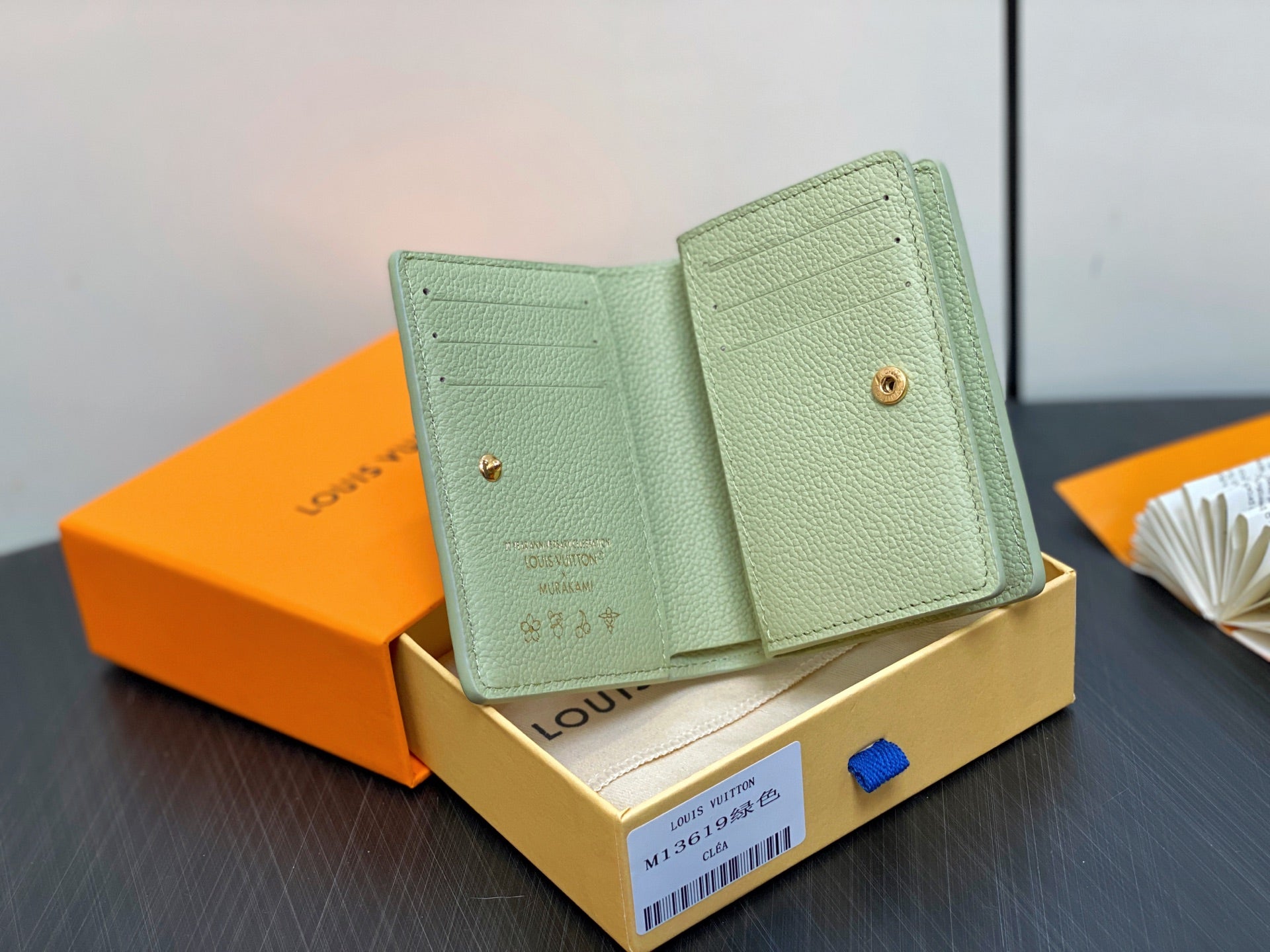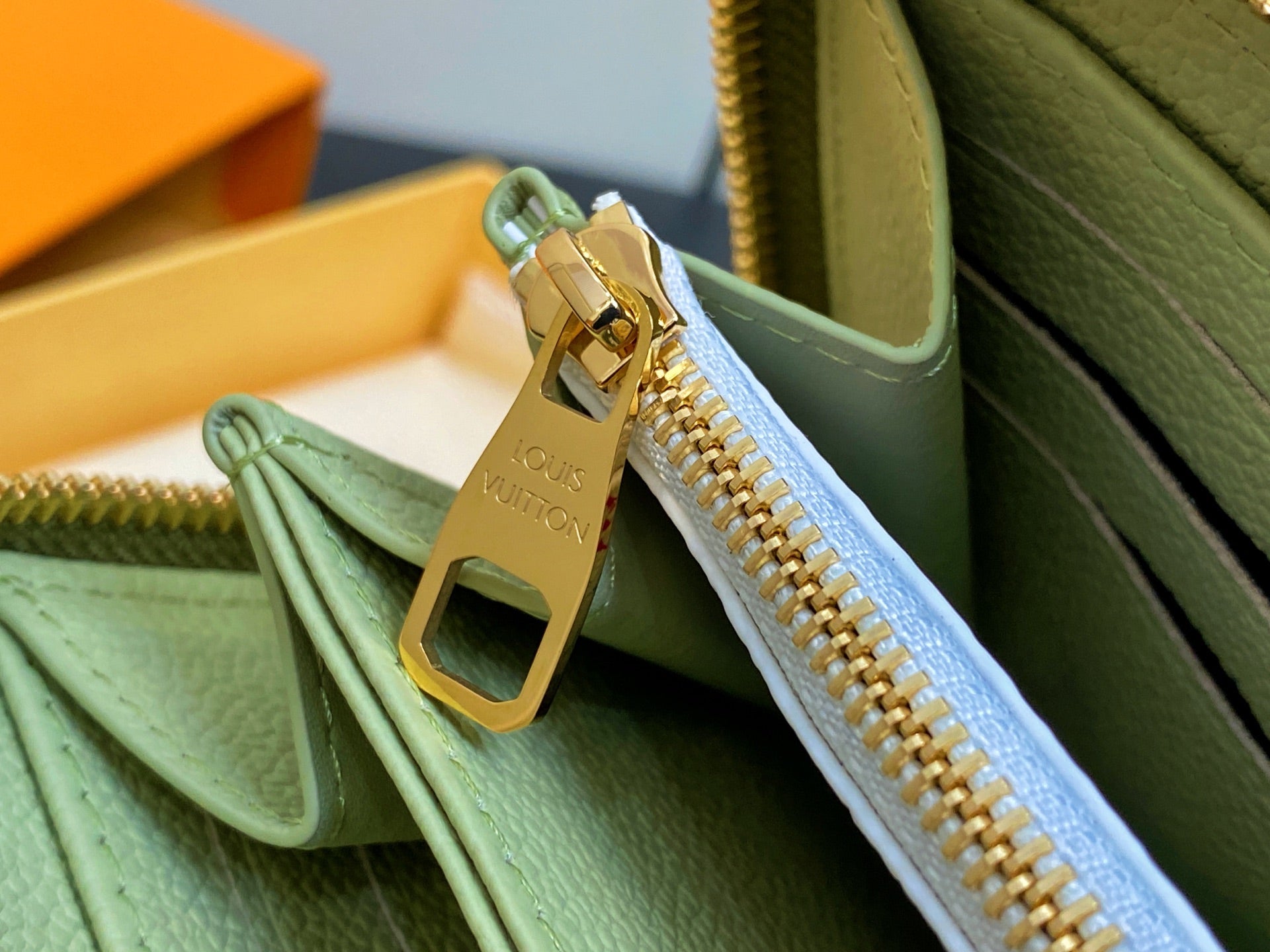 LV × TM Zipper Wallet Green Gold Leather 329877