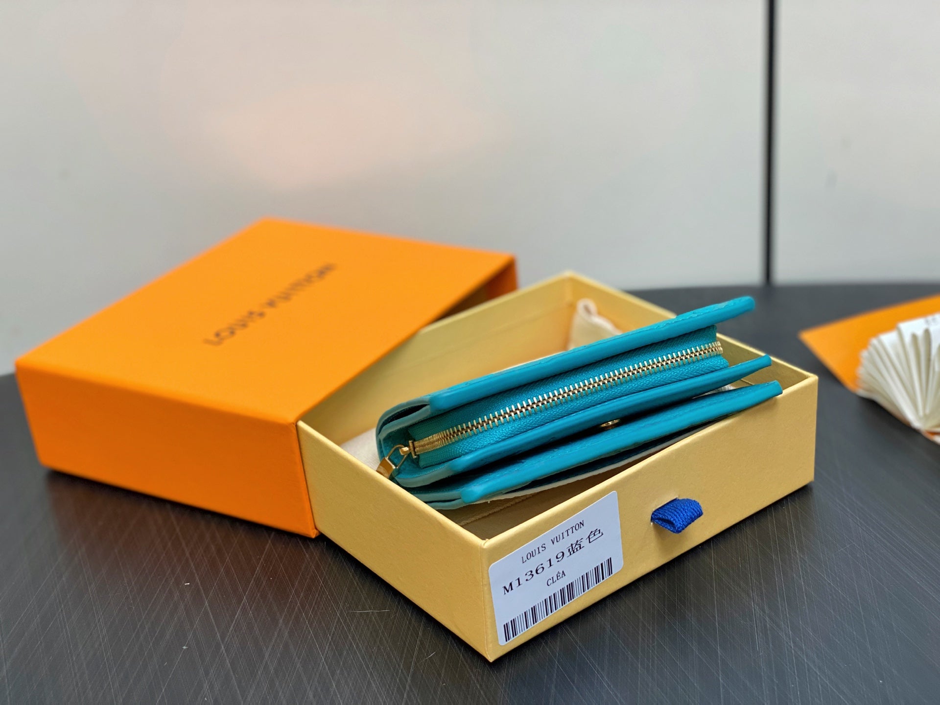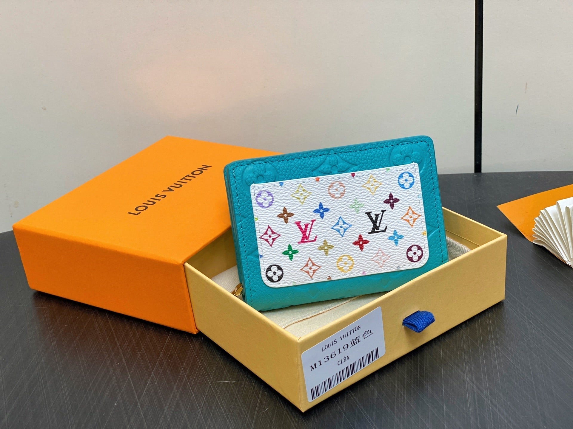 LV × TM Zipper Wallet Blue Gold Leather 329915