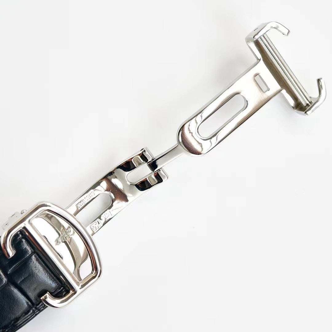 Baignoire 28mm Pink Gold Diamond Case Black Silk Leather