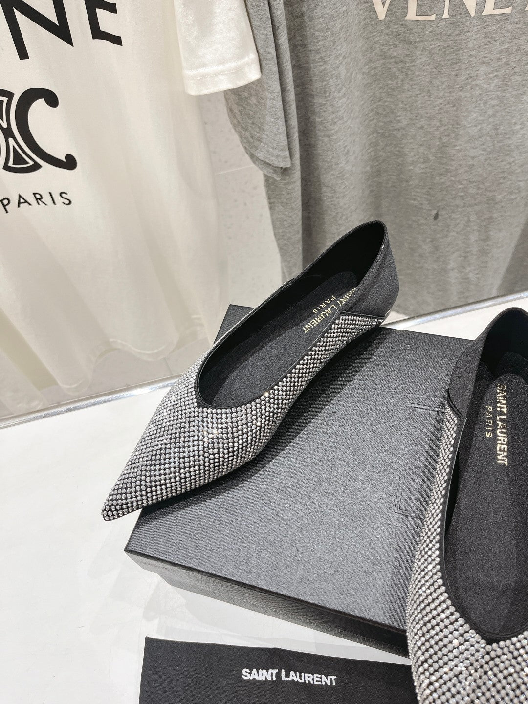 SL NOUR POINTED TOE BALLET BLACK SATIN