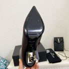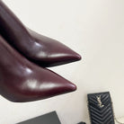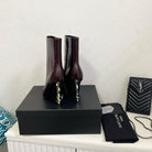 YSL 2025 Logo Metal Heel Ankle Boot Dark Burgundy Cowhide 575002