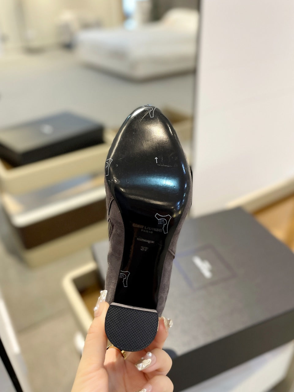 YSL 25 High-heeled Boot Burgundy Cowhide 522266
