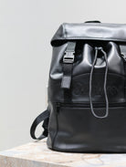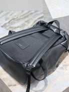 BACKPACK 45 IN BLACK CALFSKIN WITH EMBOSSED LOGO
