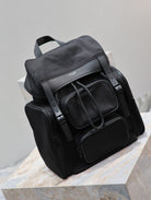CITY MULTI-POCKET BACKPACK 42 IN BLACK NYLON AND SMOOTH CALFSKIN