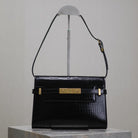 MANHATTAN SMALL 24 IN BLACK CROCODILE PATTERN GLOSSY CALFSKIN GOLD BUCKLE